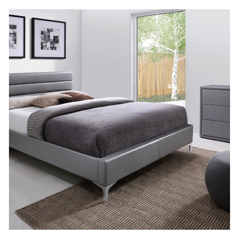 Le lit THOMAS allie confort et élégance avec son revêtement en simili cuir gris. Ce lit est conçu pour un matelas de 160 x 200 cm et offre des dimensions de 215 cm de longueur, 99,5 cm de hauteur et 165 cm de largeur. Il comprend un sommier intégré, garantissant un soutien optimal pour votre matelas et améliorant ainsi votre confort de sommeil.