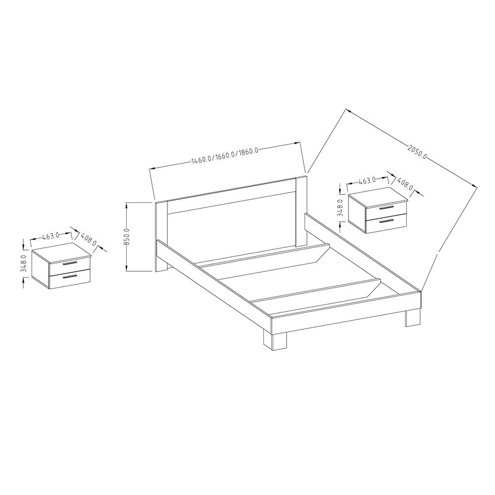 * Lit + tête de lit : l186 x L205 x H85 cm. (Couchage 180x200 cm)