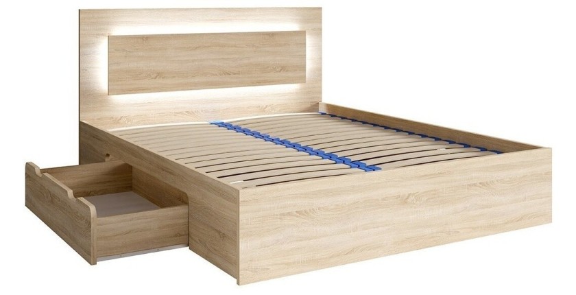 Le lit NOFI en coloris chêne sonoma, avec ses dimensions de 180 x 200 cm, est conçu pour offrir confort et praticité à votre chambre. Doté de 2 tiroirs de rangement, un de chaque côté, ce lit est parfait pour maximiser l'espace tout en ajoutant une touche chaleureuse et naturelle à votre intérieur. Le sommier inclus assure un soutien idéal pour votre matelas, garantissant un sommeil réparateur, tandis que les tiroirs offrent un espace discret pour ranger vos affaires.