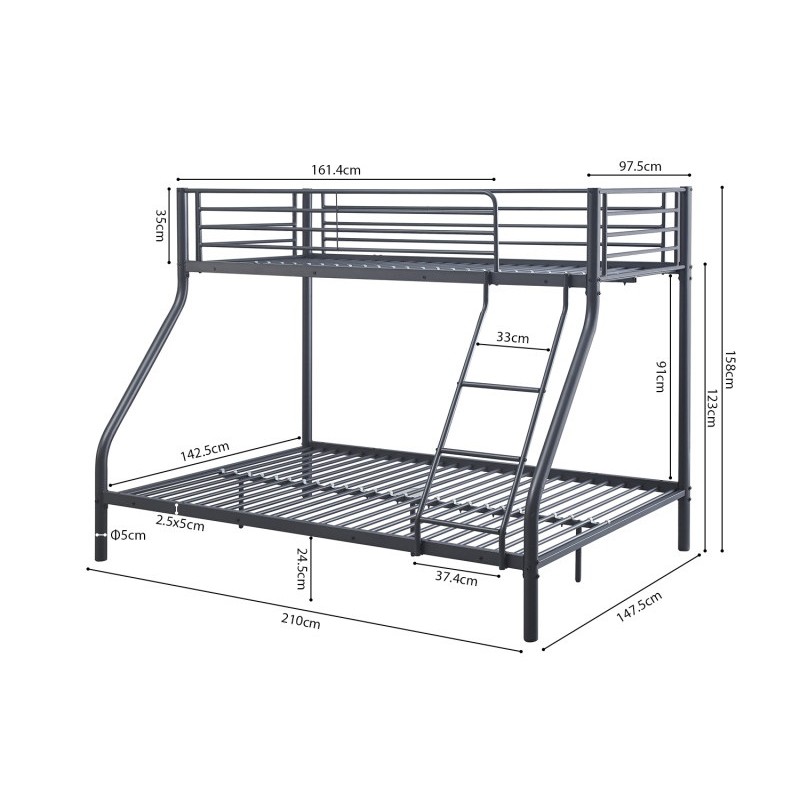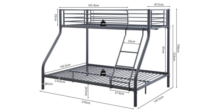 Optimisez l’espace de votre chambre avec le lit superposé SAMMY. Grâce à sa structure en métal robuste et son design moderne, ce lit superposé offre un couchage simple en hauteur (90x200 cm) et un couchage double en bas (140x200 cm). Son coloris gris foncé apporte une touche d’élégance et de sobriété à votre intérieur.