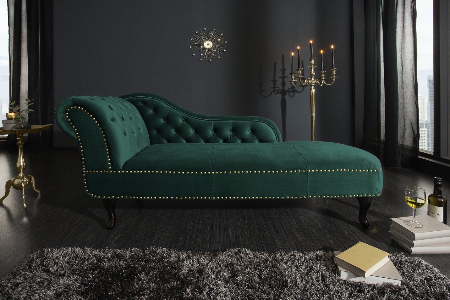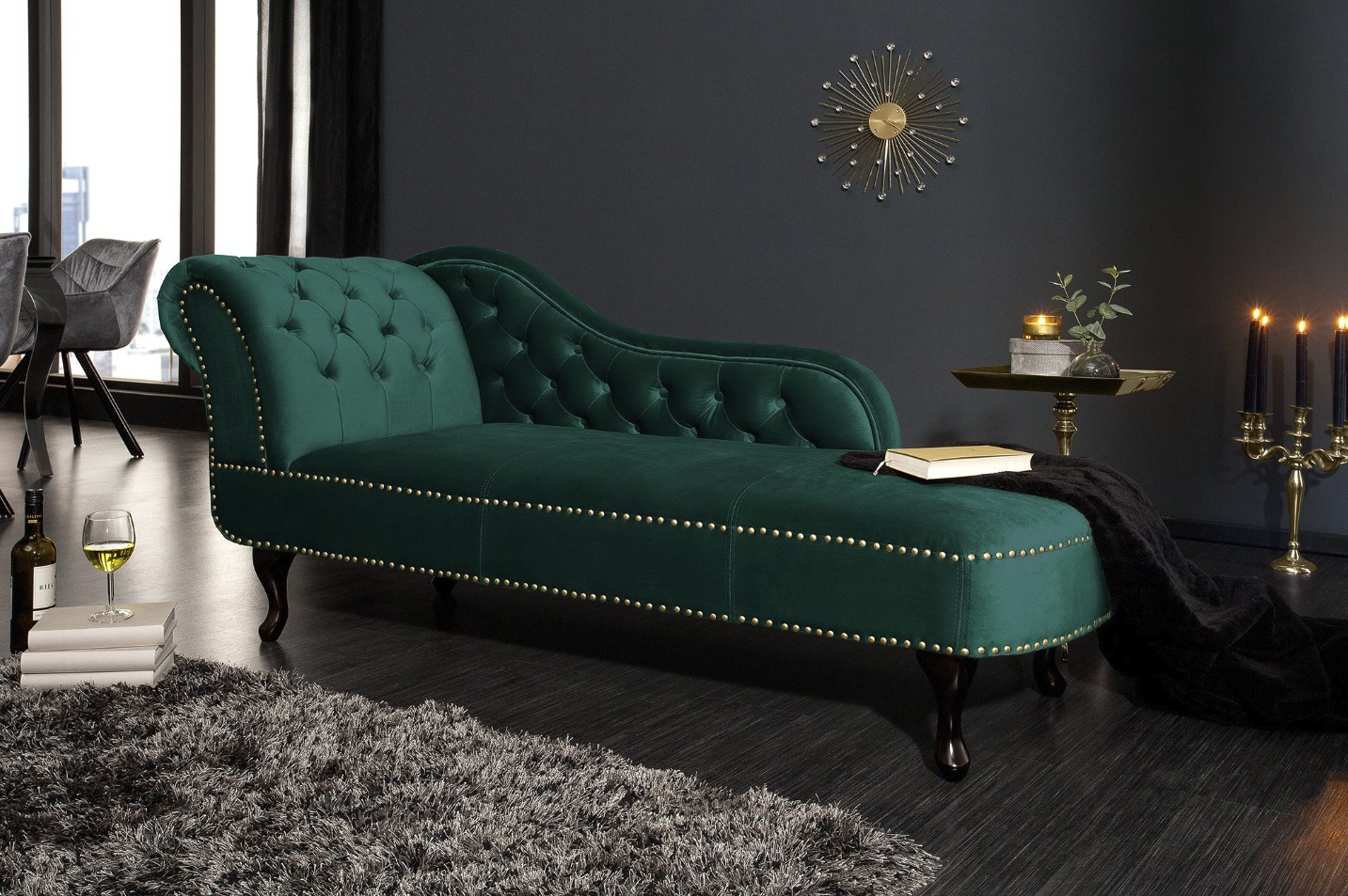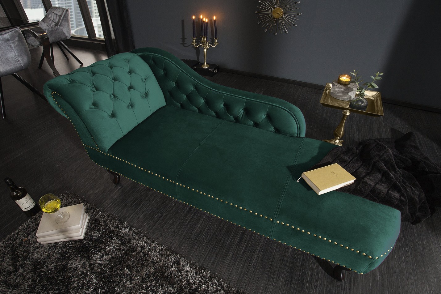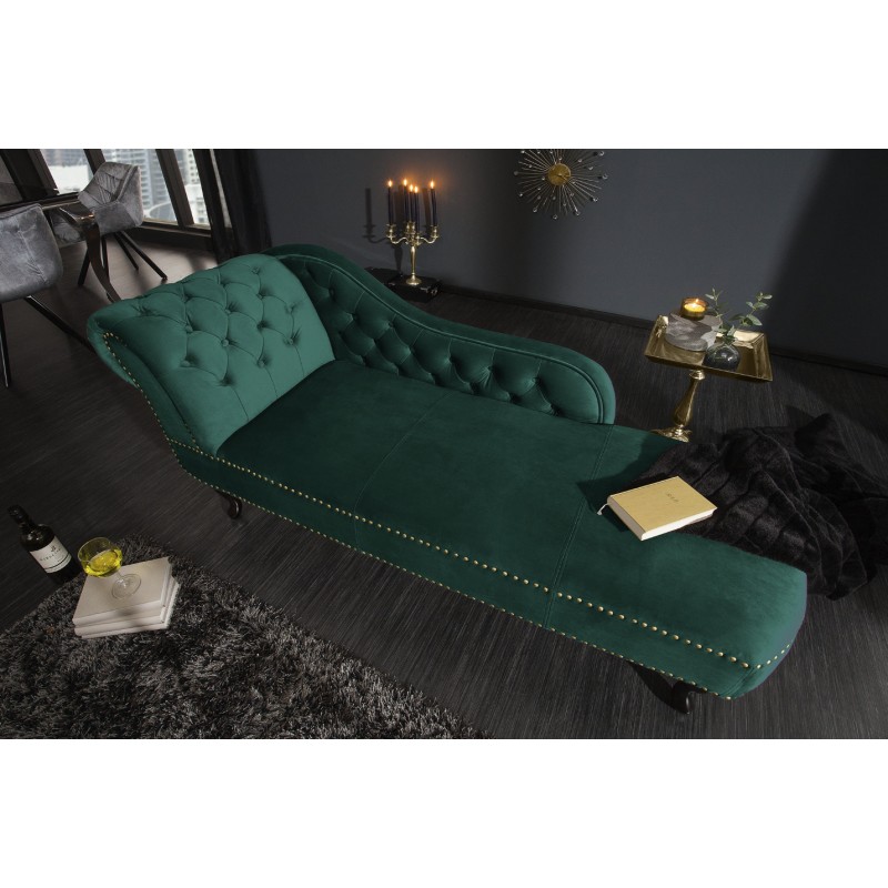 La méridienne EDGAR en velours vert émeraude incarne un style baroque raffiné et audacieux. Sa teinte intense et élégante apporte une touche de caractère à votre intérieur, tout en créant un espace propice à la détente. Son format allongé est idéal pour se relaxer, lire ou profiter d’un moment de repos.
