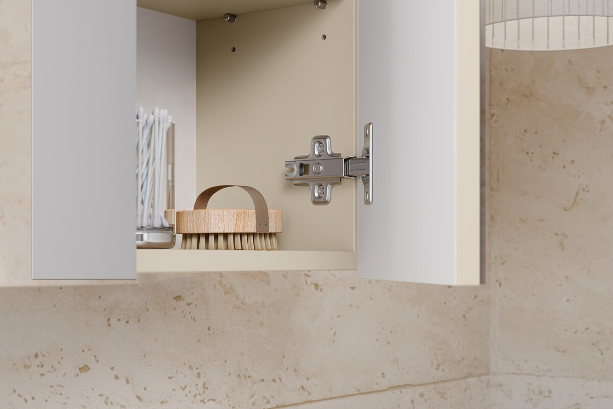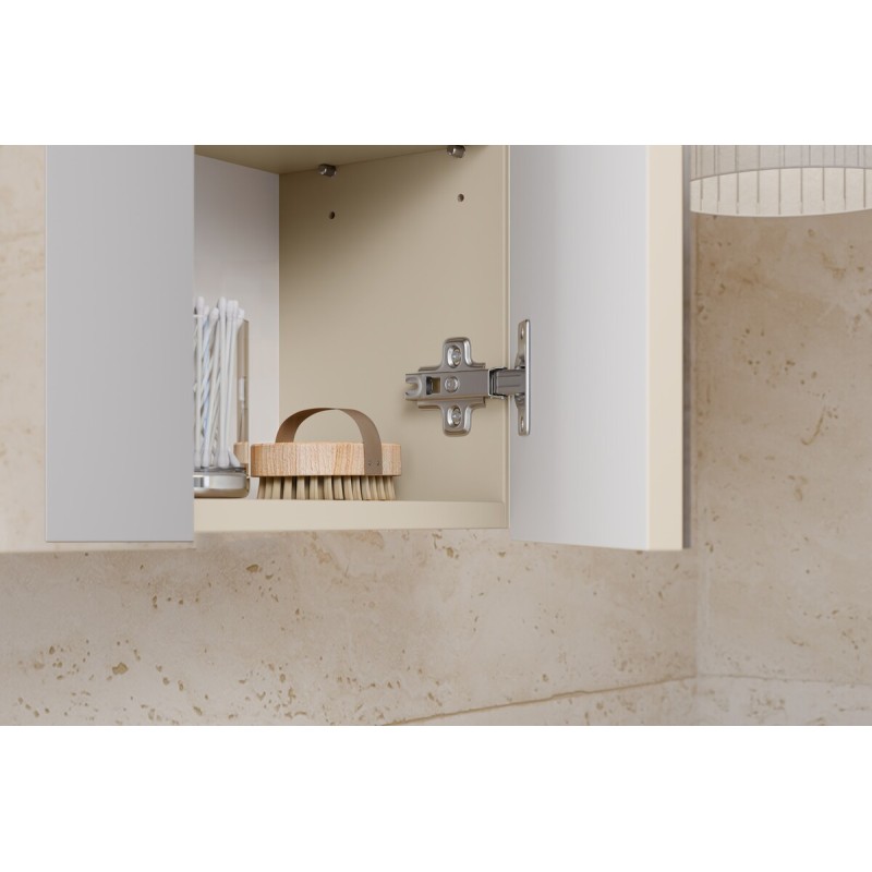 Apportez élégance et fonctionnalité à votre salle de bain avec ce meuble de rangement ERMANO 60 cm, conçu dans un coloris cachemire doux et intemporel, sublimé par des détails en chêne clair pour une ambiance chaleureuse et moderne.
