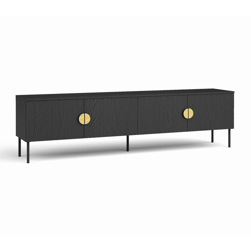 Ajoutez une touche de modernité et de sophistication à votre salon avec notre meuble TV 4 portes, noir avec poignées dorées, de la collection MONDO. Idéal pour organiser vos équipements multimédia et accessoires, ce meuble TV allie design contemporain et praticité.