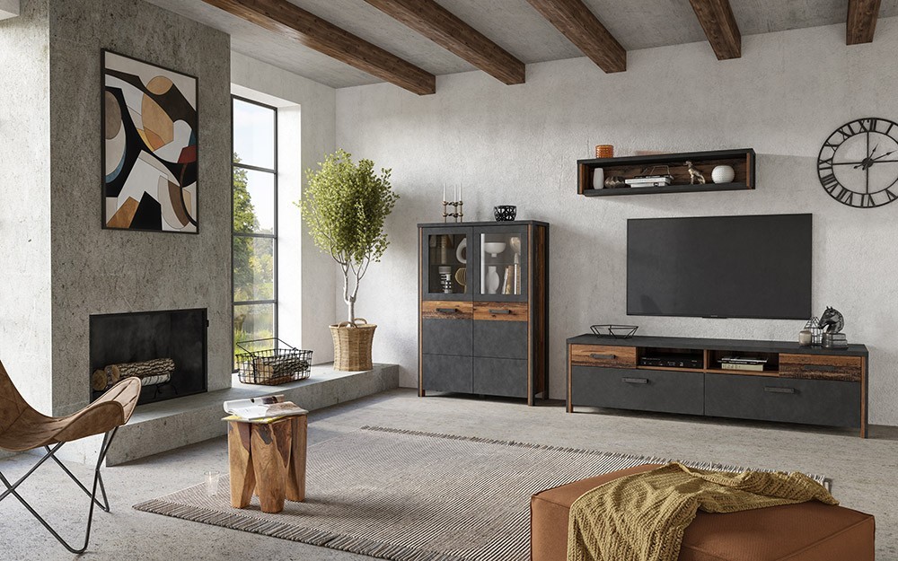 Le meuble TV WINDSOR allie fonctionnalité et design moderne avec son coloris gris anthracite et chêne foncé. Ce meuble TV de 190 cm de large est conçu pour offrir un espace de rangement optimal tout en ajoutant une touche d'élégance à votre salon. Il est équipé de deux portes, deux tiroirs et deux niches, offrant des options de rangement variées pour vos équipements multimédia.