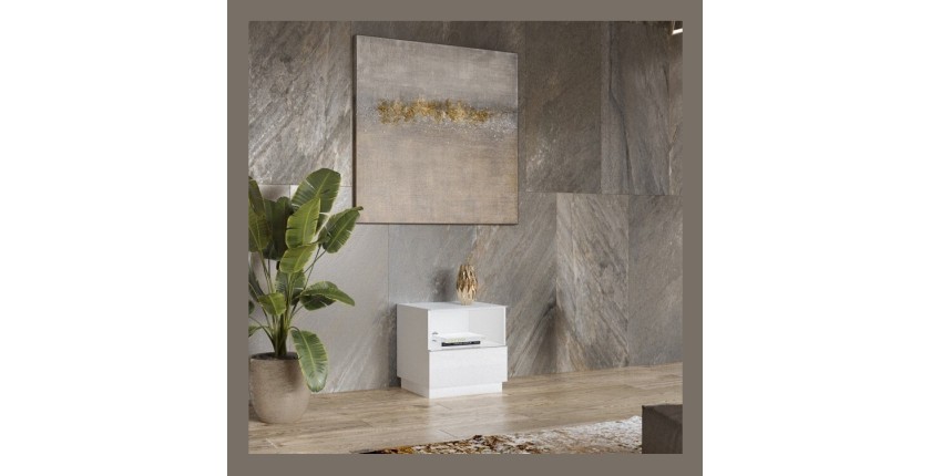 - CARACTÉRISTIQUES : Meuble TV composé d'un tiroir et une niche avec un éclairage LED intégré. Son large plateau et étagère vous permettront d'apposer votre télévision et vos plus beaux objets décoratifs.