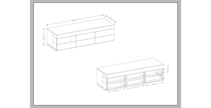 - CARACTÉRISTIQUES : Meuble tv composé de six grands tiroirs. Large plateau qui vous permettra d'apposer votre télévision ou vos plus beaux objets déco.
