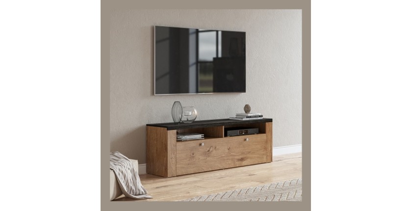 - CARACTÉRISTIQUES : Meuble tv avec 1 porte abattante et une niche centrale. Son large plateau qui vous permettra d'apposer votre télévision ou vos plus beaux objets déco.