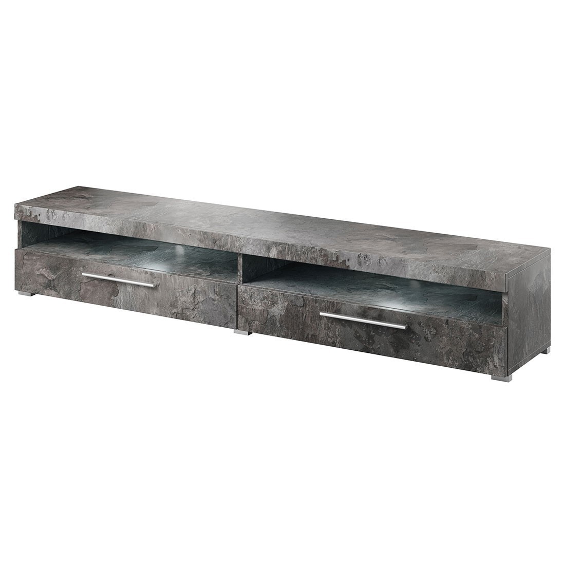 - CARACTÉRISTIQUES : Meuble tv avec deux portes abattantes et deux niches avec éclairage LED intégré. Son large plateau qui vous permettra d'apposer votre télévision ou vos plus beaux objets déco.