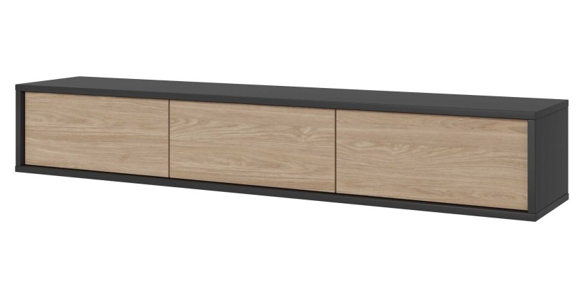 - CARACTÉRISTIQUES : Meuble TV composé de 3 portes abattantes. Son large plateau et étagère vous permettront d'apposer votre télévision et vos plus beaux objets décoratifs.