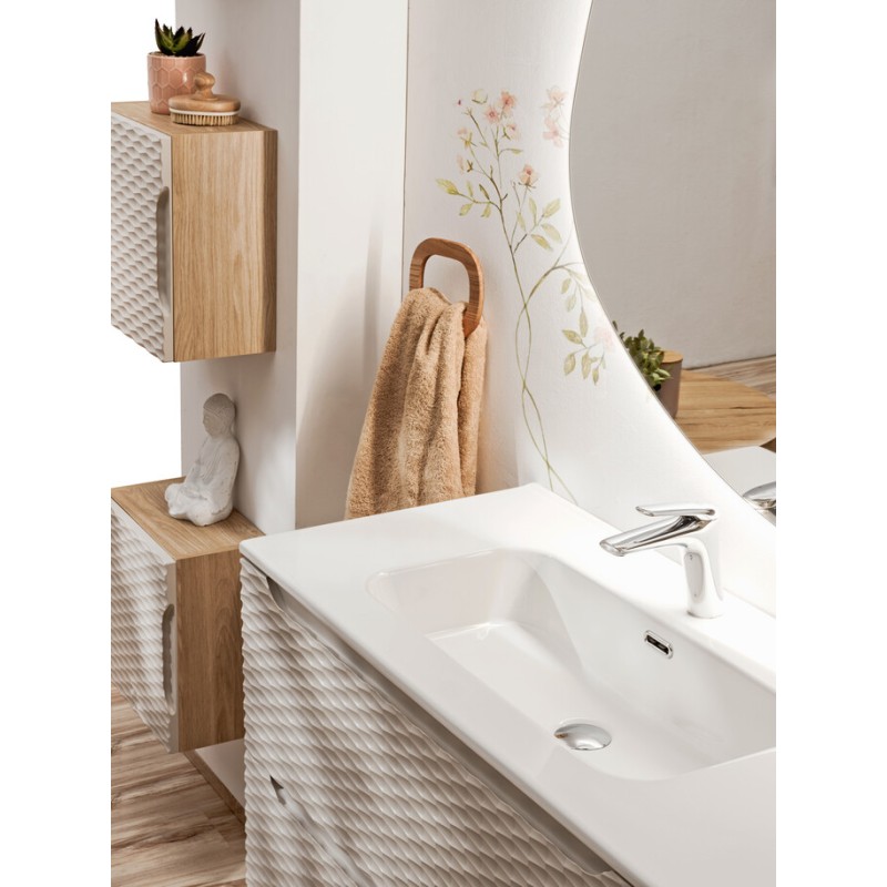 Fabriqué en MDF et panneaux mélaminés de haute qualité, ce meuble suspendu séduit par son aspect bois et sa finition mate. Il s’intègre aisément dans tout style de salle de bain, du moderne au scandinave. Sa structure robuste assure une longue durée de vie tout en conservant une allure élégante.