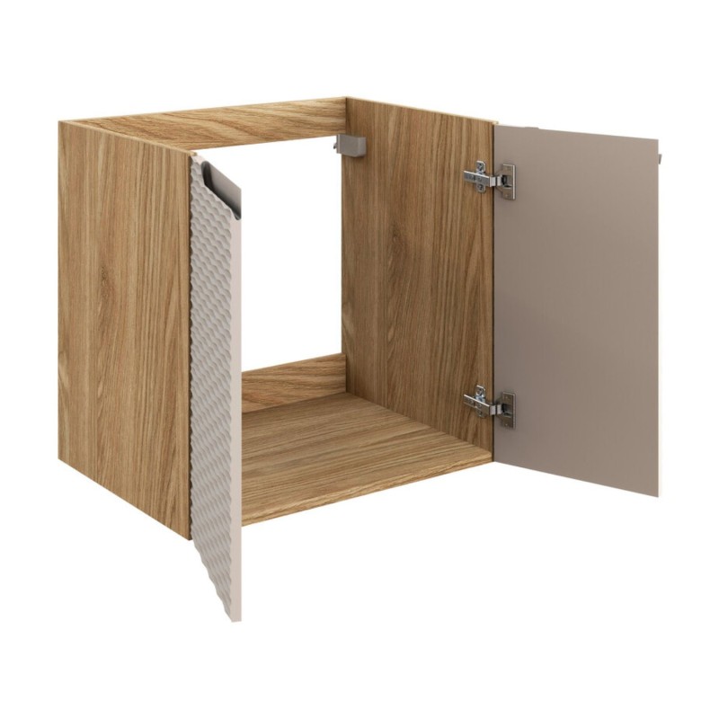 Le meuble sous vasque YOKA 60 cm associe un design contemporain à une finition naturelle et élégante. Son mélange harmonieux de chêne clair et de beige mat apporte une touche de douceur et de chaleur à votre salle de bain.