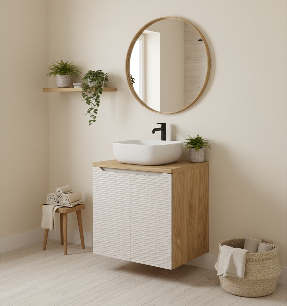 Le meuble sous vasque YOKA 60 cm est le choix parfait pour ceux qui recherchent un meuble compact, élégant et durable. Son design suspendu, sa teinte claire et sa finition mate font de lui un atout déco aussi pratique qu’esthétique.