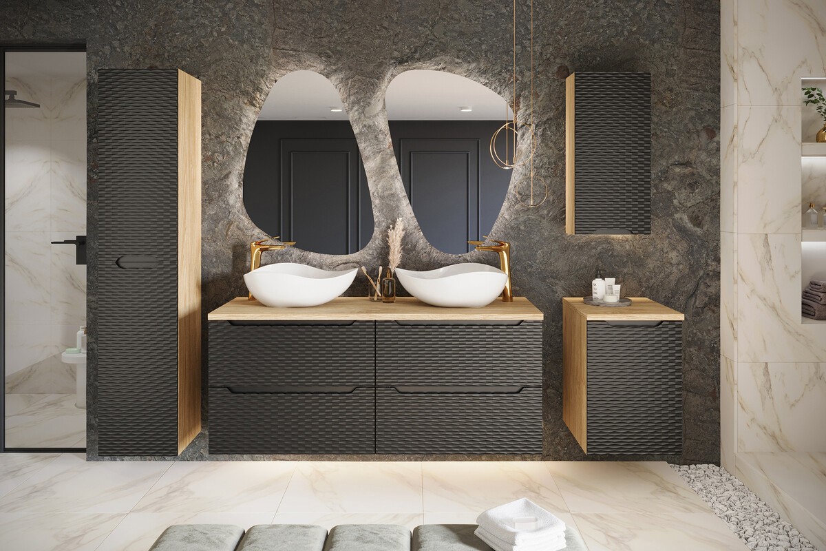 Doté de 2 tiroirs spacieux, ce meuble offre un rangement pratique pour vos produits de soin, serviettes et accessoires. Conçu en MDF et panneaux mélaminés de haute qualité, il est résistant à l’humidité et conserve son aspect impeccable au fil du temps. Son installation suspendue facilite l’entretien du sol tout en créant un effet visuel léger et aérien.