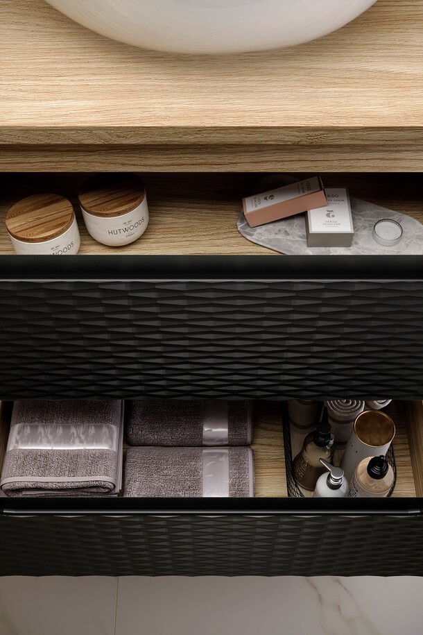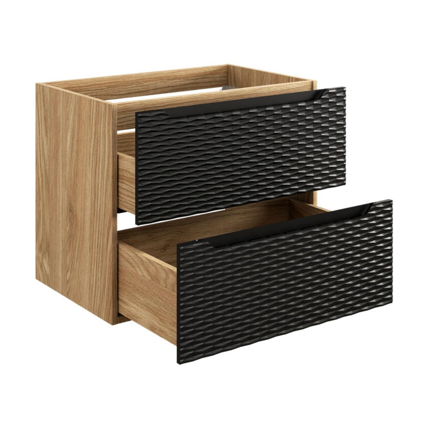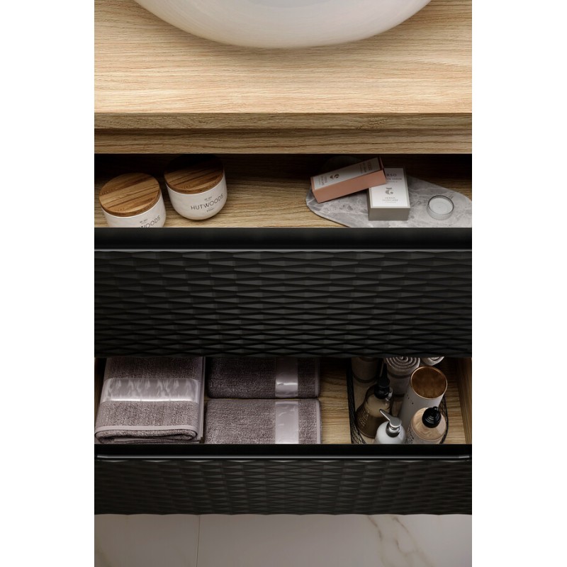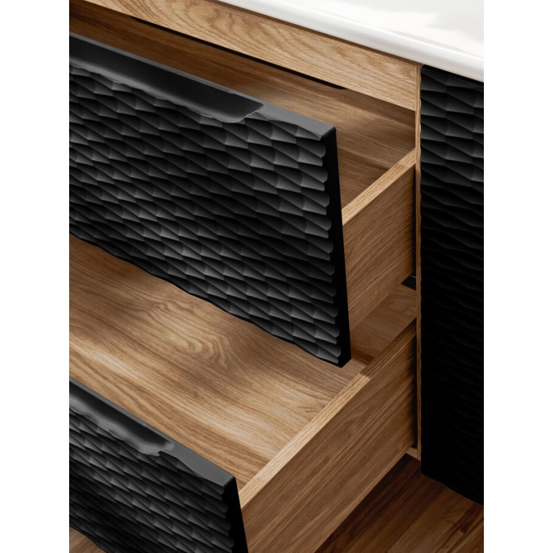 Alliant design contemporain et fonctionnalité, le meuble sous vasque YOKA de 70 cm s’adapte parfaitement aux salles de bain modernes. Sa finition chêne clair et noir mat apporte un contraste élégant et une touche chaleureuse à votre intérieur.