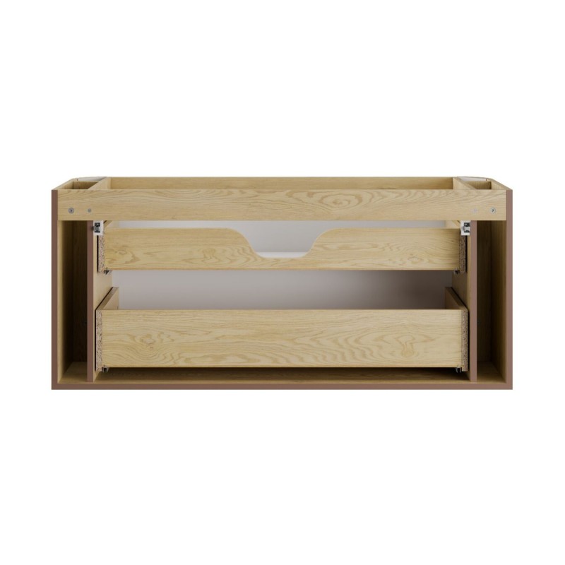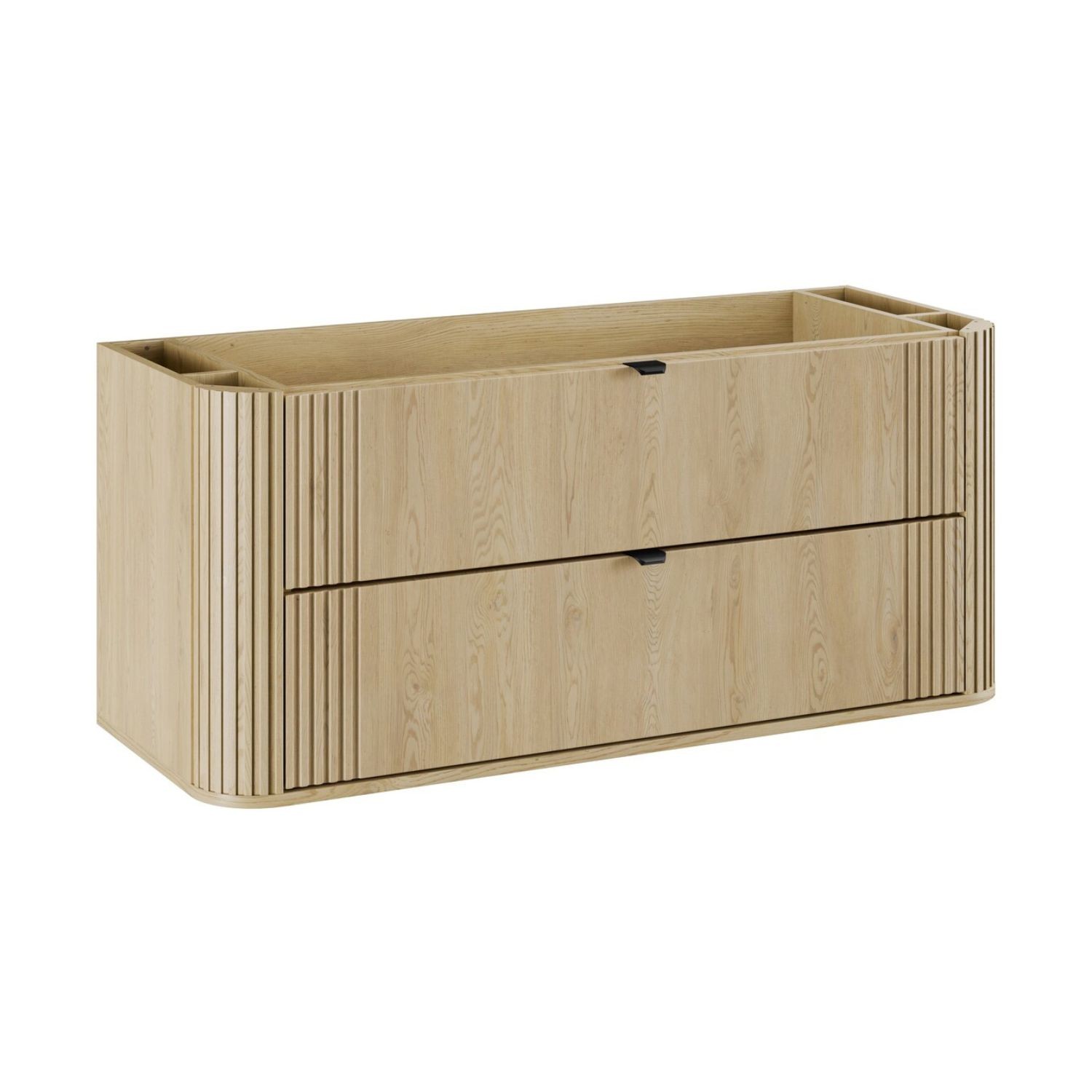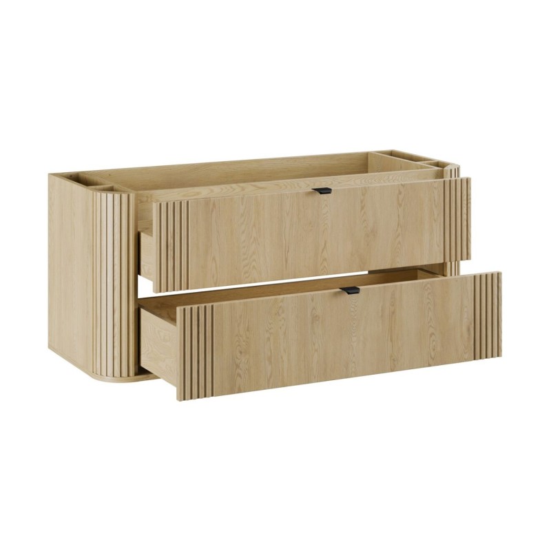 Alliez style et fonctionnalité avec le meuble sous vasque KORI 120 cm, doté de 2 larges tiroirs et d’une finition aspect bois. Son design suspendu apporte une esthétique moderne tout en facilitant le nettoyage au sol.