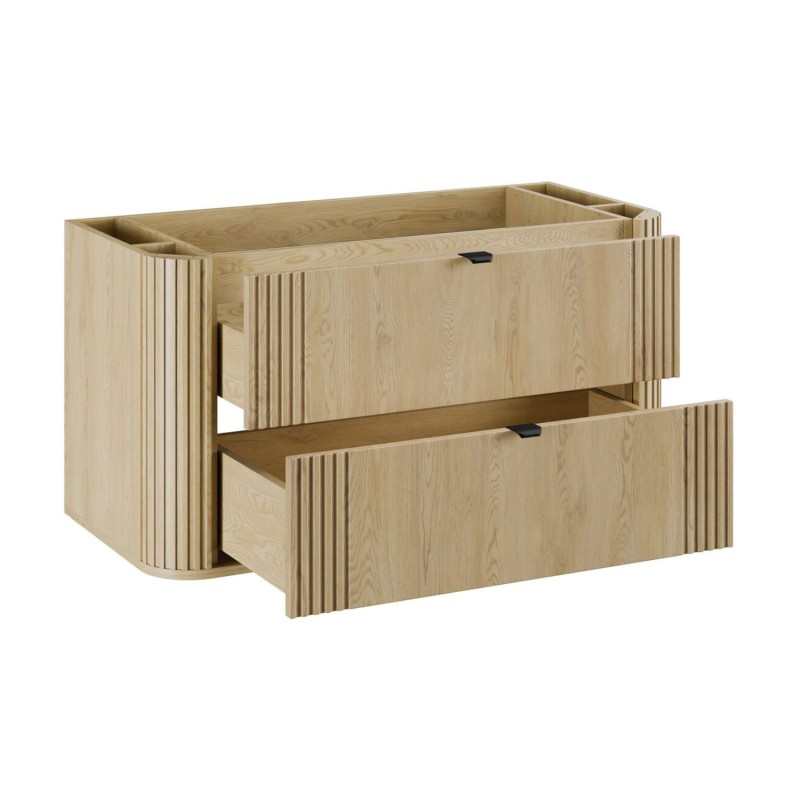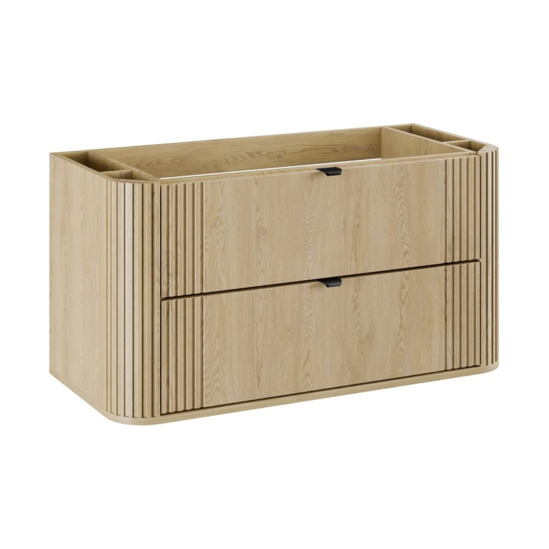 Apportez modernité et fonctionnalité à votre salle de bain avec le meuble sous vasque KORI 100 cm, équipé de 2 tiroirs spacieux et d’une élégante finition chêne clair aspect bois. Son installation suspendue offre une esthétique épurée tout en facilitant le nettoyage du sol.