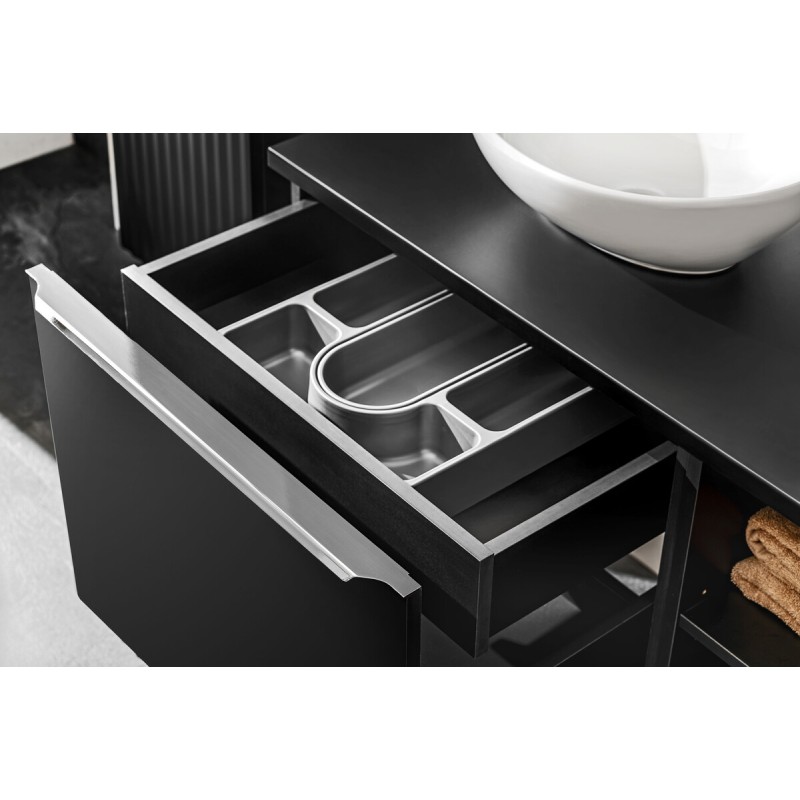 Doté de 2 tiroirs spacieux : 1 tiroir visible et 1 tiroirs intérieur, ce meuble suspendu permet de ranger les produits essentiels du quotidien tout en libérant de l’espace au sol. Sa largeur de 60 cm en fait un choix idéal pour les petites et moyennes salles de bain recherchant un meuble compact, fonctionnel et design.