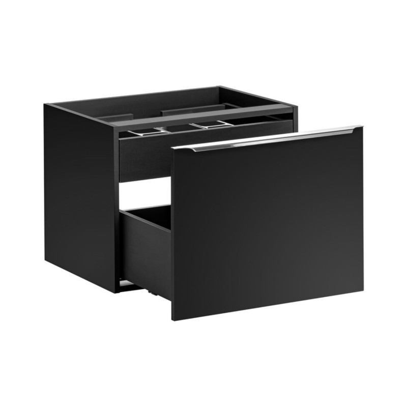 Ajoutez du style et du rangement à votre salle de bain avec le meuble sous vasque VANTA 60 cm noir. Sa finition noir mat et sa structure en MDF robuste offrent un rendu moderne, élégant et parfaitement adapté aux environnements humides.