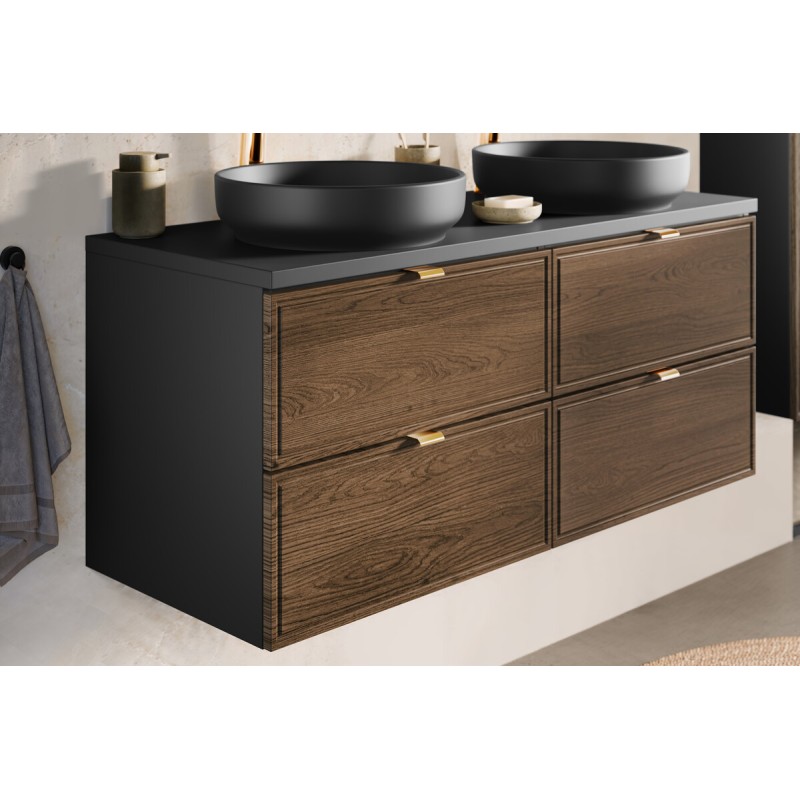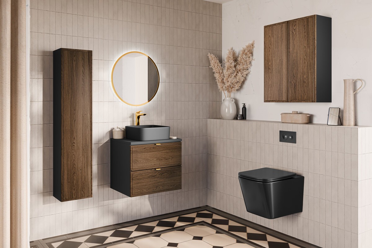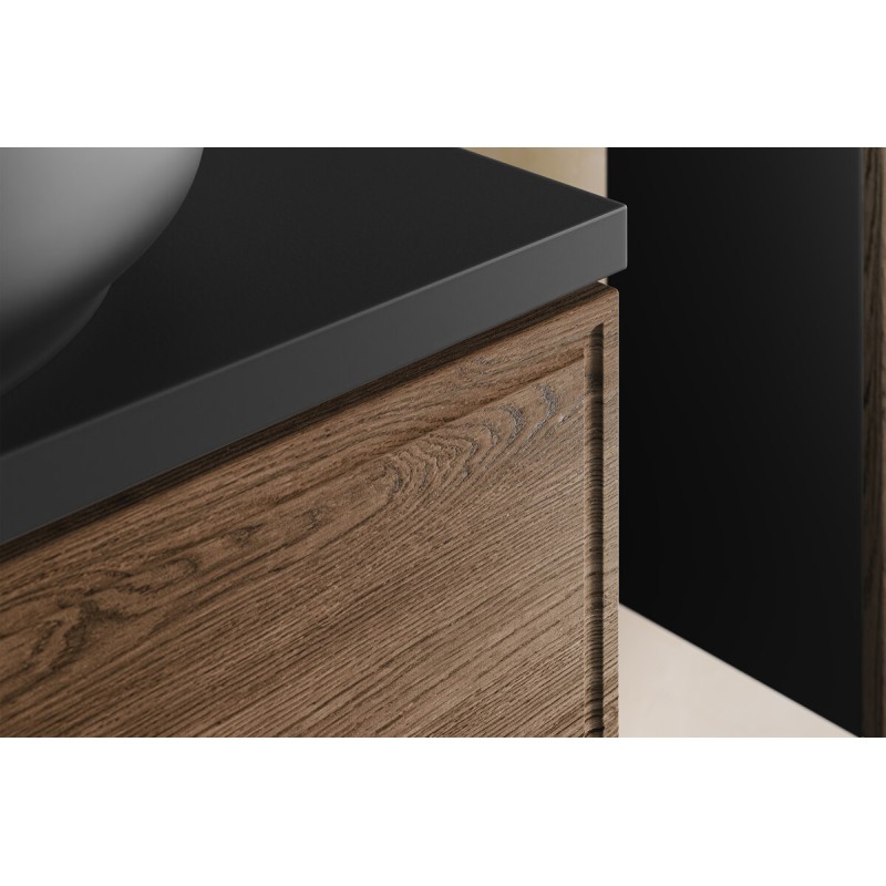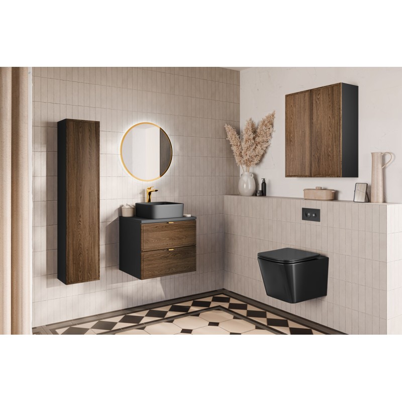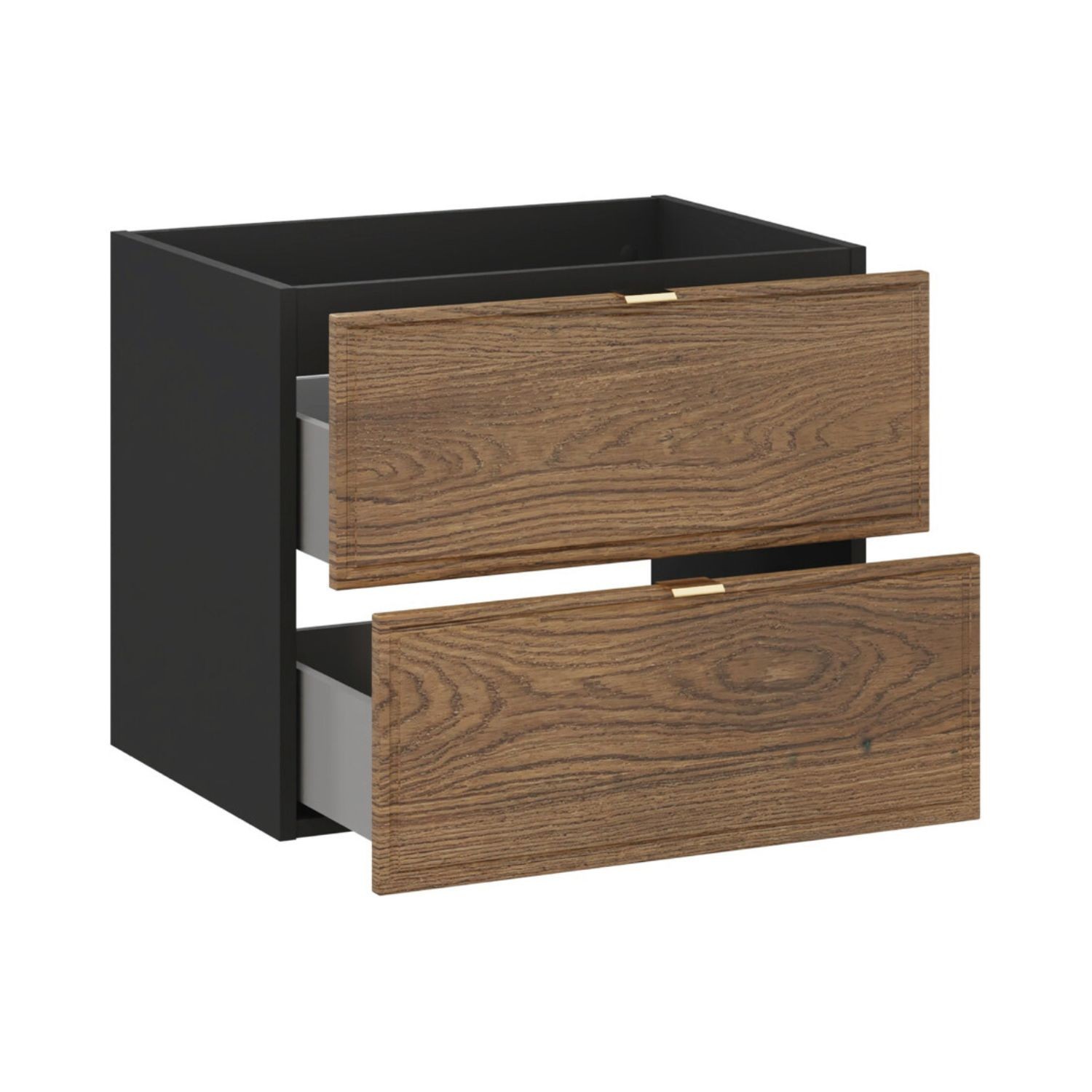 Apportez style et praticité à votre salle de bain avec ce meuble sous vasque SAVIA 60 cm. Sa finition marron aspect bois associée au noir mat crée un contraste moderne idéal pour les intérieurs contemporains.
