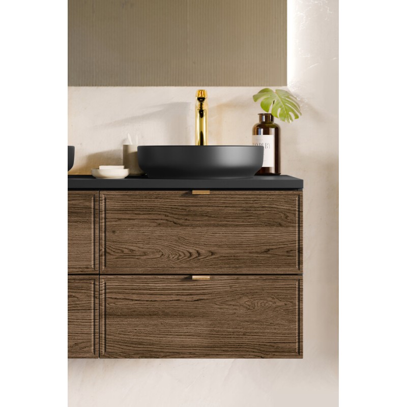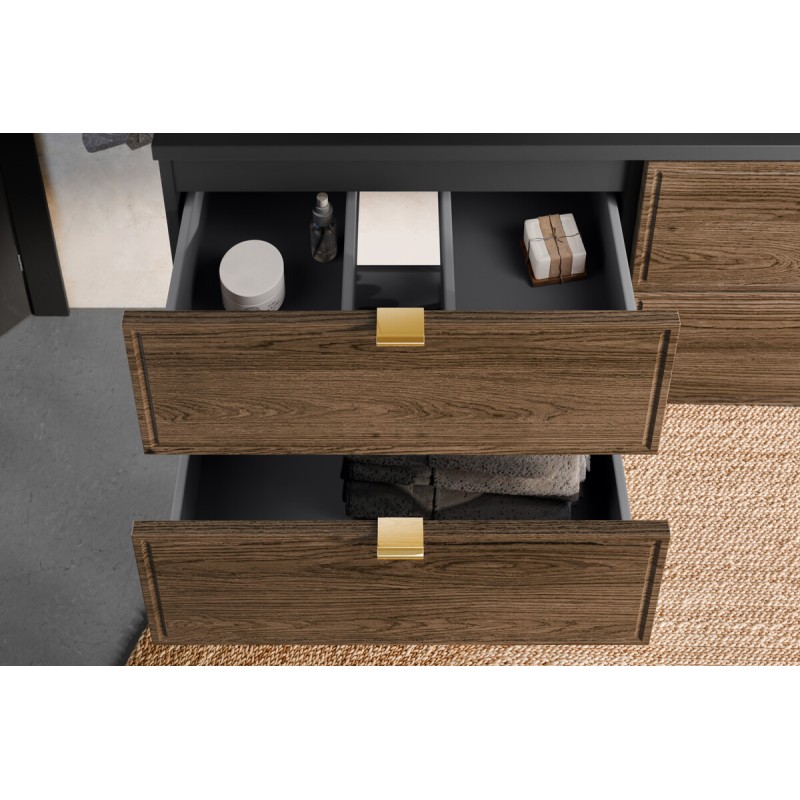 Équipé de 2 tiroirs spacieux, ce meuble permet de ranger facilement vos accessoires, produits de toilette et linge de bain. Son installation suspendue facilite le nettoyage du sol et apporte une esthétique aérienne.