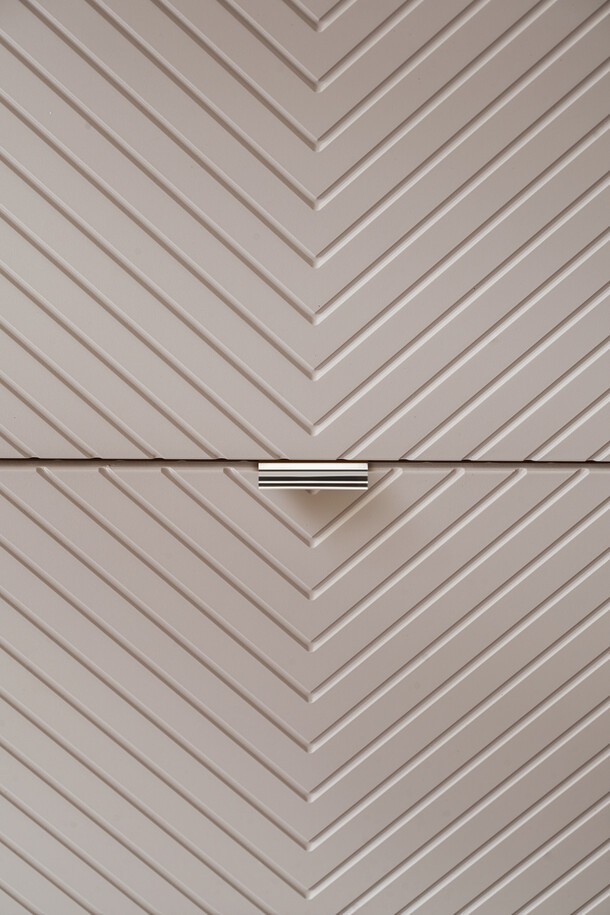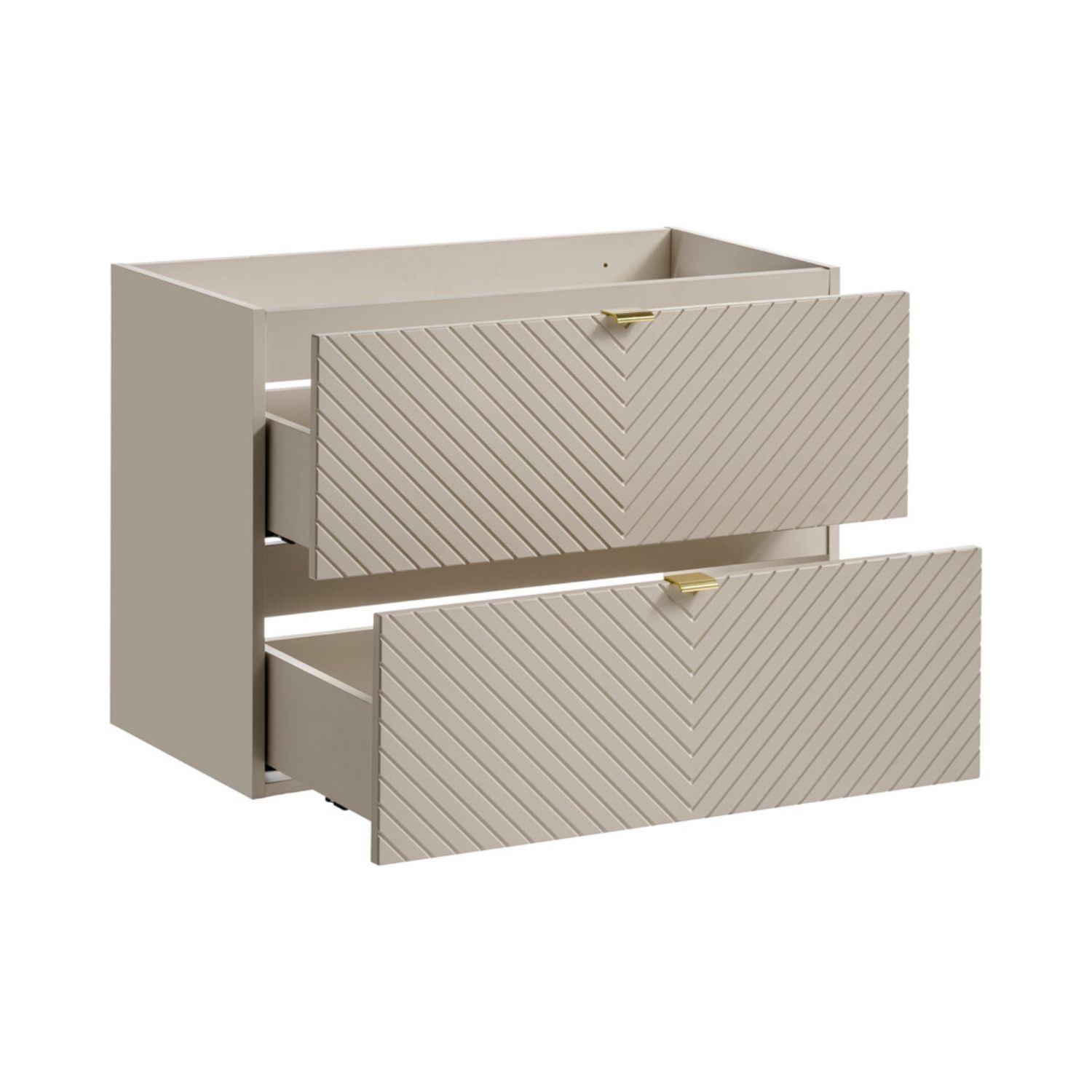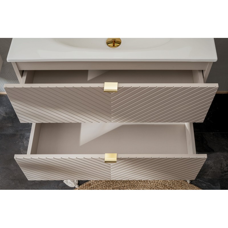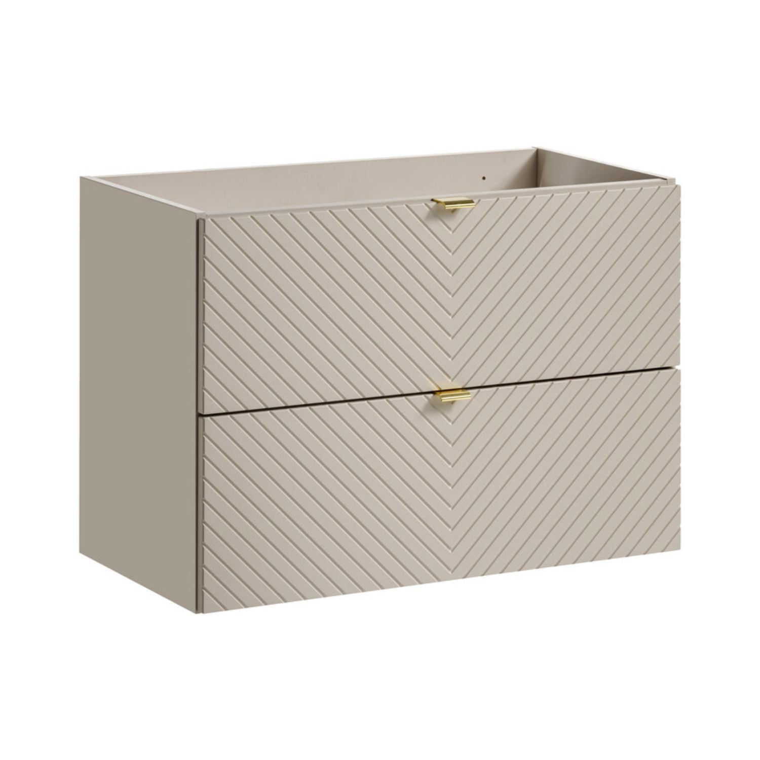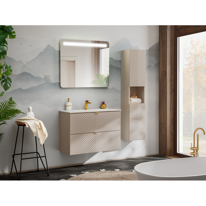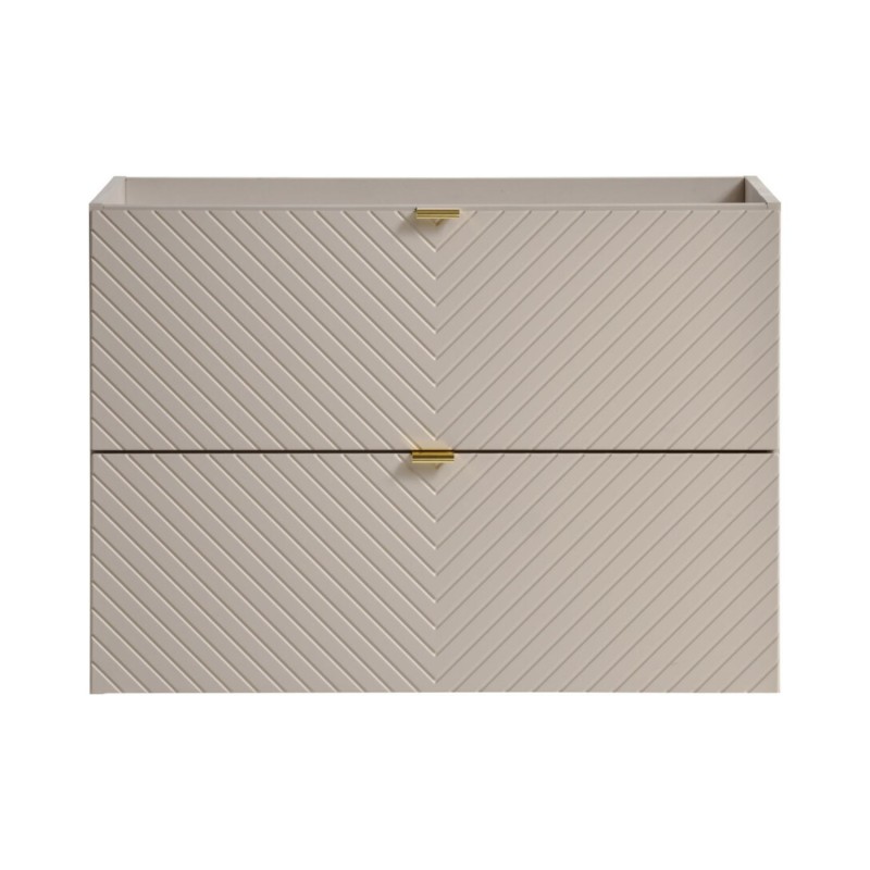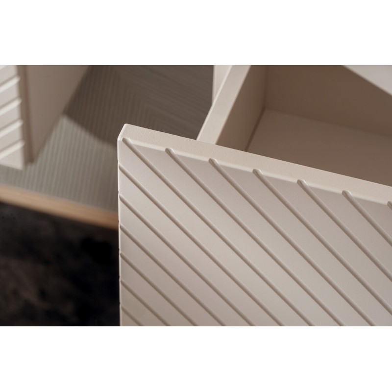 Le meuble sous vasque AOKI 80 cm incarne parfaitement l’esprit zen et japandi de la collection. Son coloris beige cachemire mat et ses motifs en chevron délicats insufflent une ambiance douce et apaisante, idéale pour créer une salle de bain harmonieuse et contemporaine.