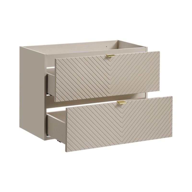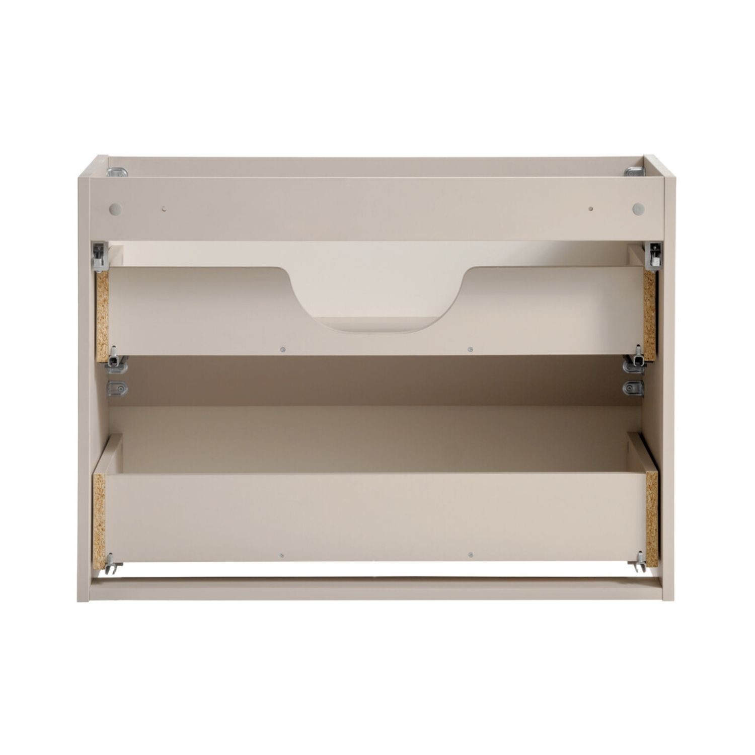 Avec ses dimensions L80 × P39 × H57 cm, il offre deux grands tiroirs coulissants qui permettent un rangement optimal des serviettes, produits de beauté ou accessoires. Sa structure suspendue libère le sol pour un effet aérien et facilite l’entretien de votre salle de bain.
