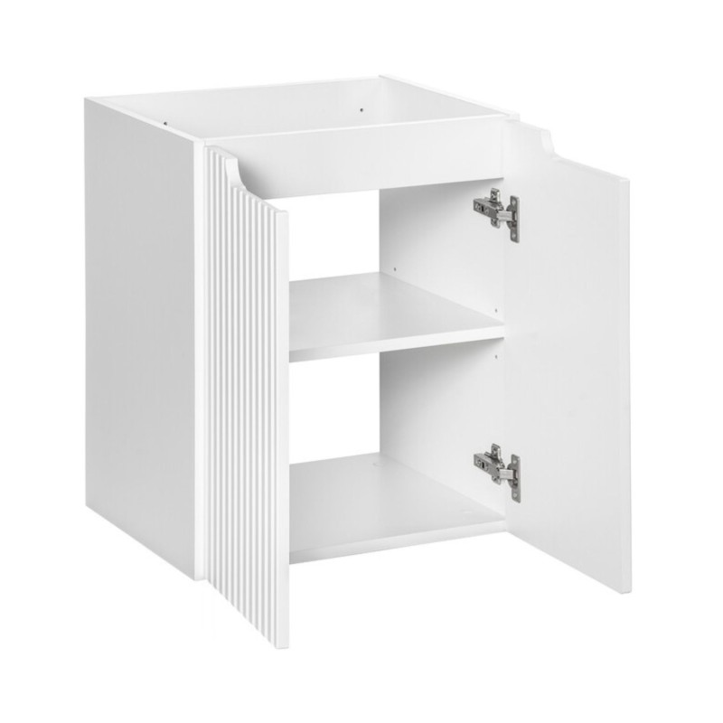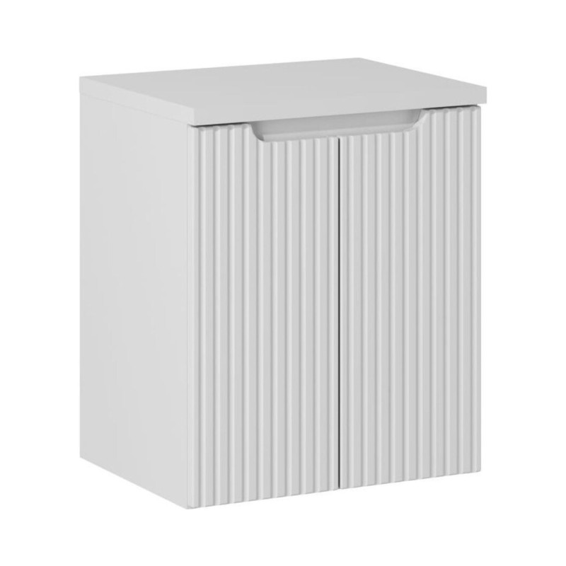L’ensemble de salle de bain VANO 50 cm est parfait pour aménager un espace compact avec élégance et modernité. Il se compose d’un meuble sous vasque suspendu blanc mat avec façades rainurées verticalement et d’un plan pour vasque blanc alpin mat.