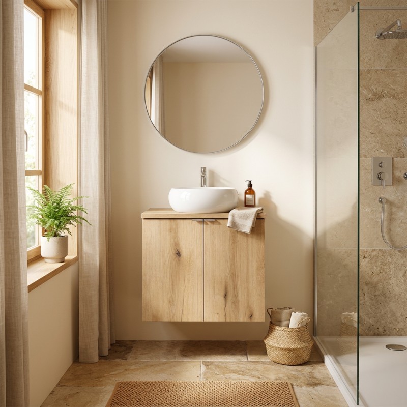 Optez pour un aménagement fonctionnel et élégant avec cet ensemble de salle de bain VANO 60 cm, idéal pour optimiser les petits espaces avec style.