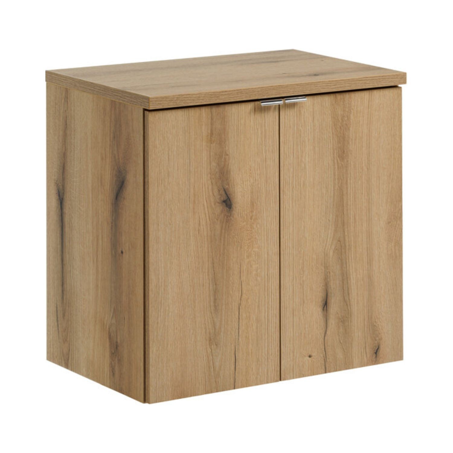 Le meuble sous vasque 2 portes est conçu en aspect chêne foncé, apportant une touche chaleureuse et naturelle à votre salle de bain. Ce coloris bois profond s’intègre facilement dans une décoration moderne ou plus classique.