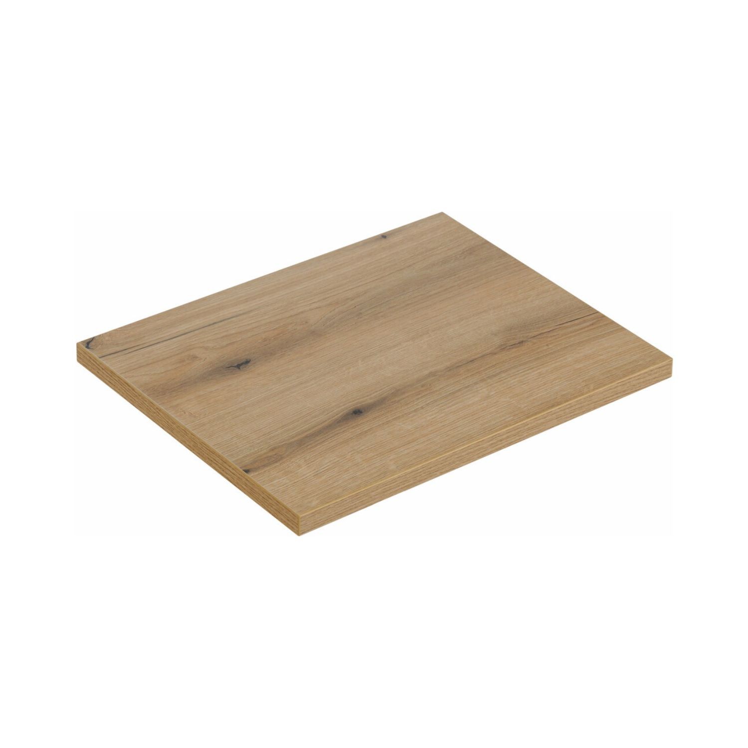 Le plan pour vasque, également en aspect chêne foncé, assure une continuité visuelle harmonieuse pour un rendu sobre et élégant.