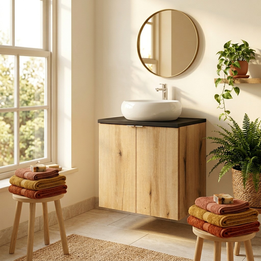 Optez pour un style moderne et contrasté avec cet ensemble VANO 60 cm, parfait pour aménager une salle de bain fonctionnelle dans un espace réduit.