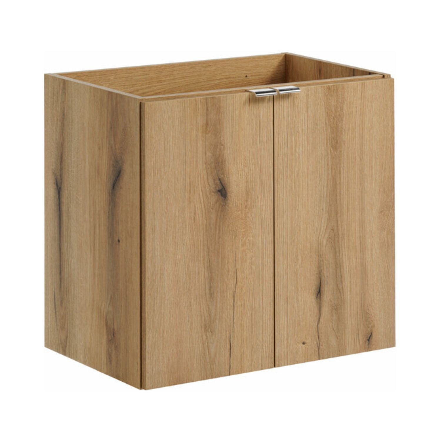 Le meuble sous vasque 2 portes en aspect chêne foncé apporte chaleur et authenticité à votre pièce, tout en offrant un rendu naturel et élégant.