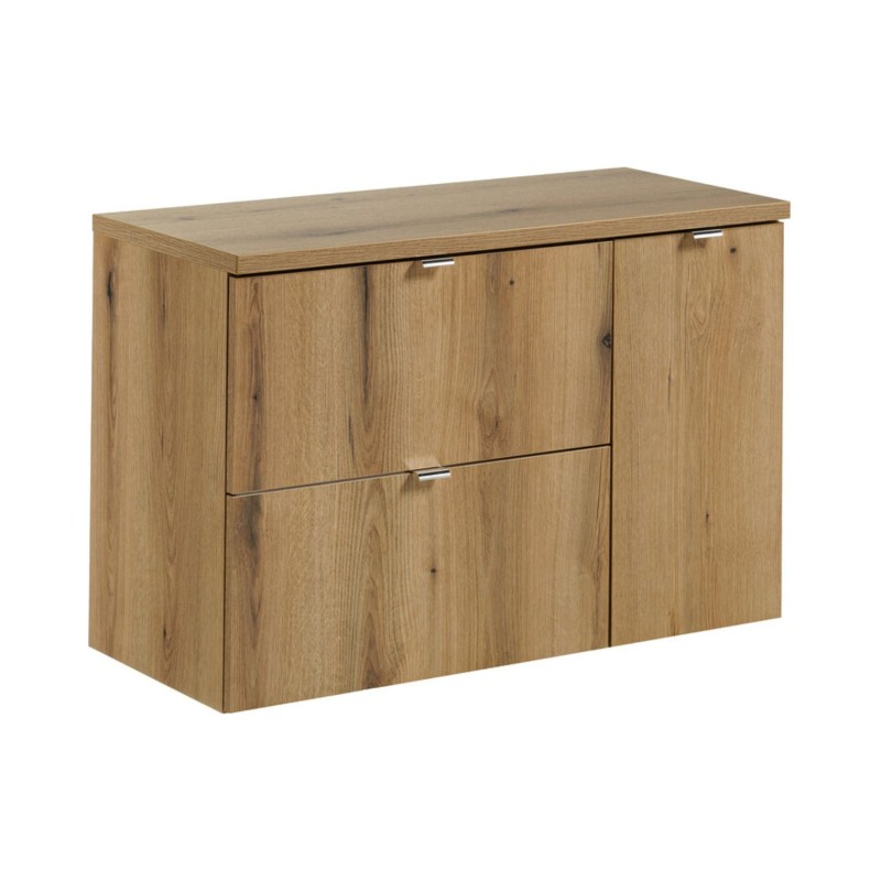Cet ensemble combine intelligemment 2 tiroirs et 1 porte, permettant de varier les rangements entre accès rapide et stockage discret.