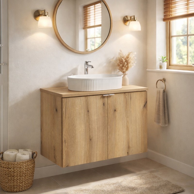 Apportez une touche chaleureuse et naturelle à votre salle de bain avec ce meuble sous vasque VANO 80 cm, conçu dans un élégant aspect chêne foncé.