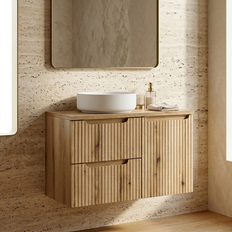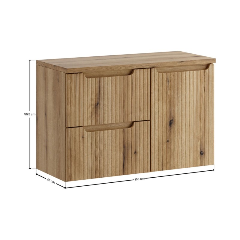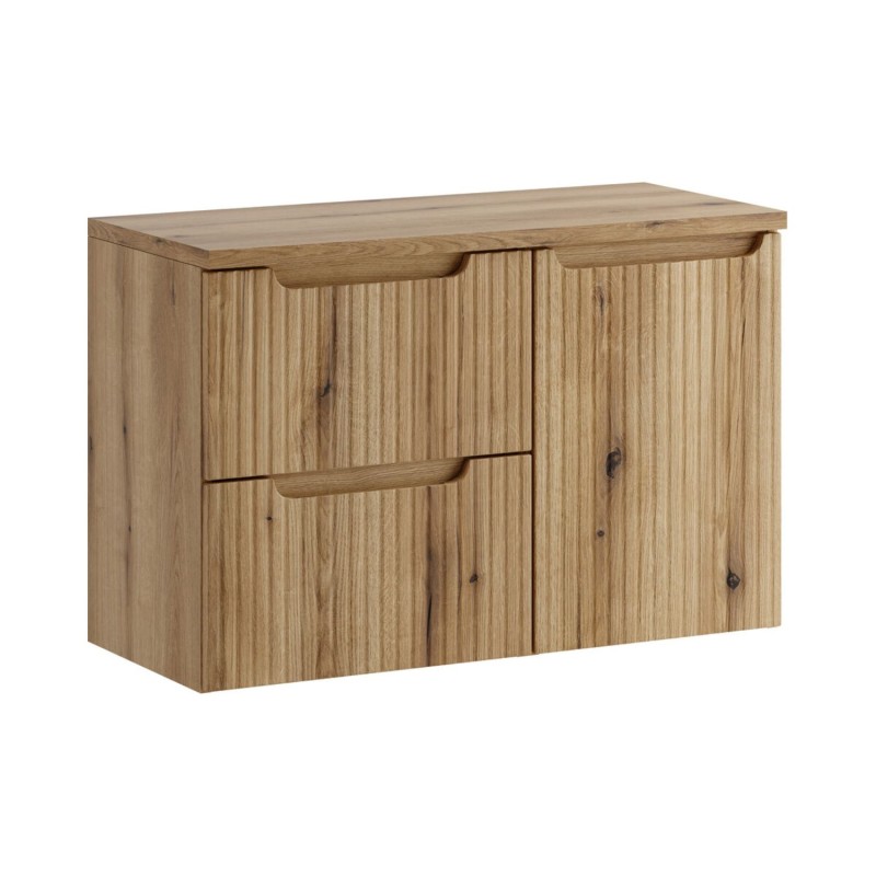 Optimisez votre salle de bain avec ce meuble sous vasque VANO 90 cm, conçu dans un élégant aspect chêne clair qui apporte luminosité et modernité à votre intérieur.