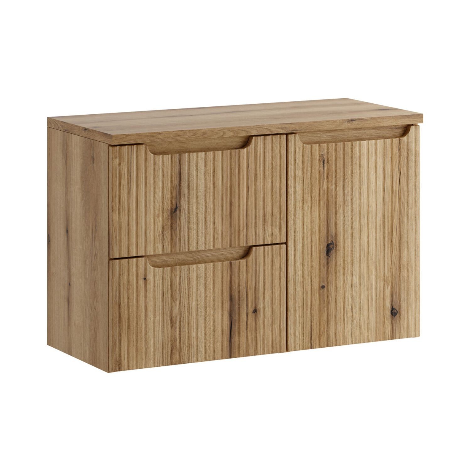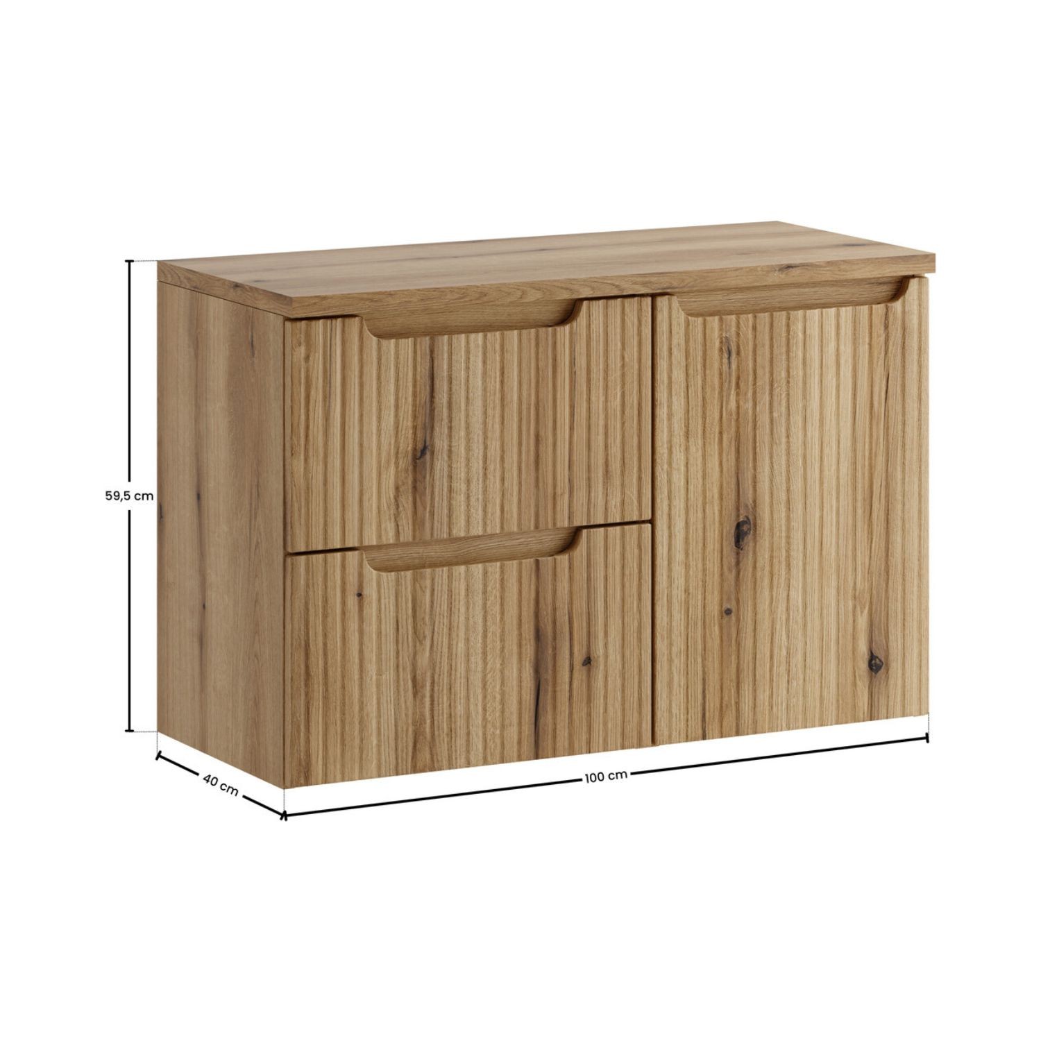 Les façades rainurées verticalement apportent une touche design et texturée, renforçant le caractère contemporain du meuble.