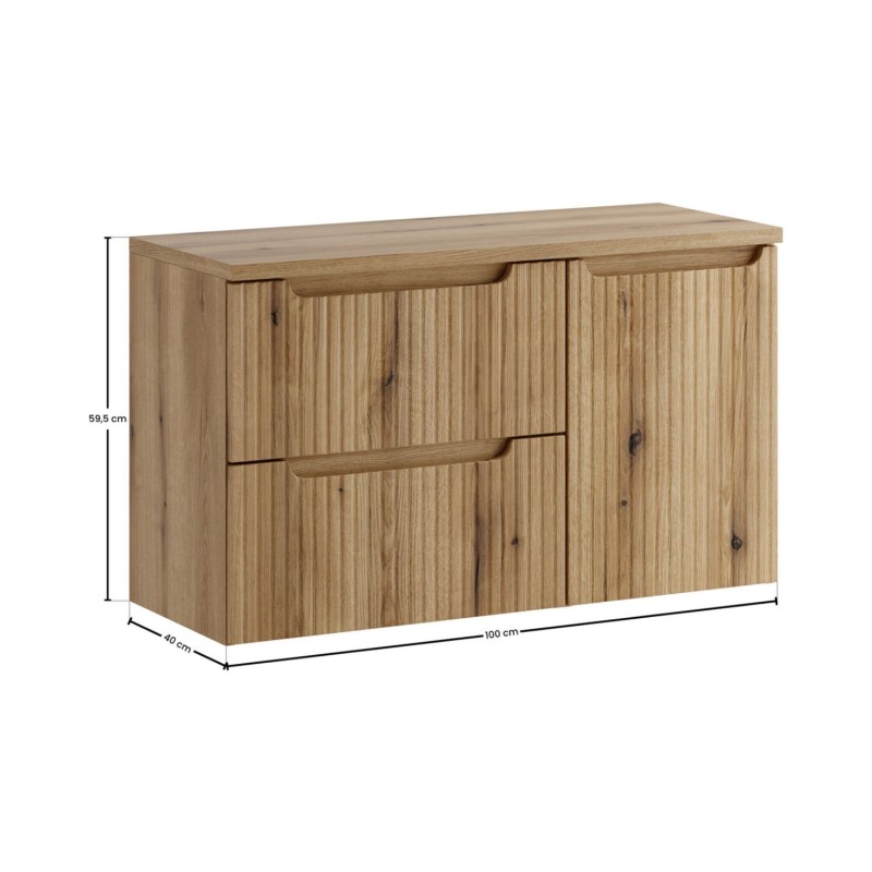 Apportez une solution pratique et esthétique à votre salle de bain avec ce meuble sous vasque VANO 100 cm, conçu dans un élégant aspect chêne clair.