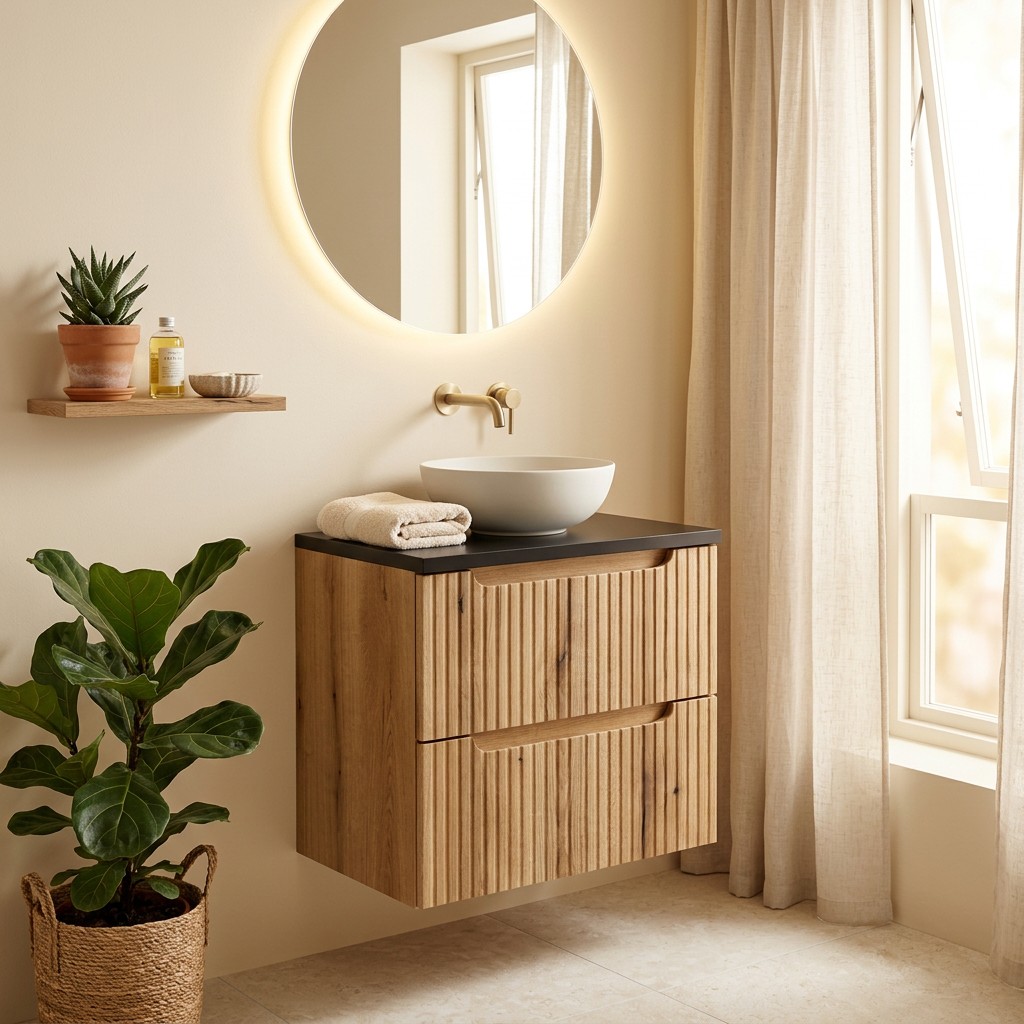 Grâce à sa pose suspendue, ce meuble optimise l’espace et facilite l’entretien du sol.