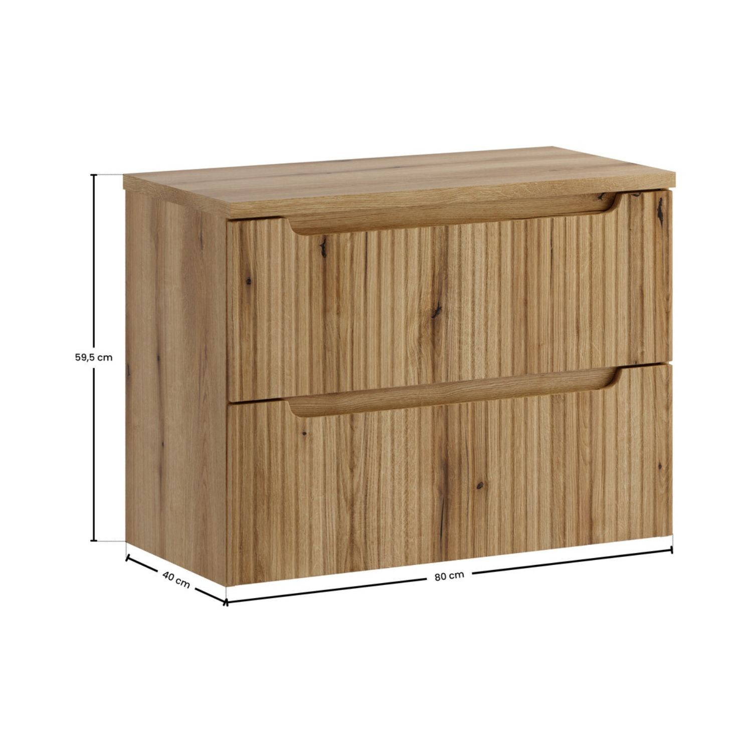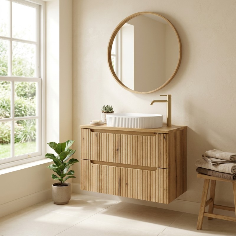Apportez une touche naturelle et moderne à votre intérieur avec cet ensemble de salle de bain suspendu VANO 80 cm, au design épuré en aspect chêne clair.