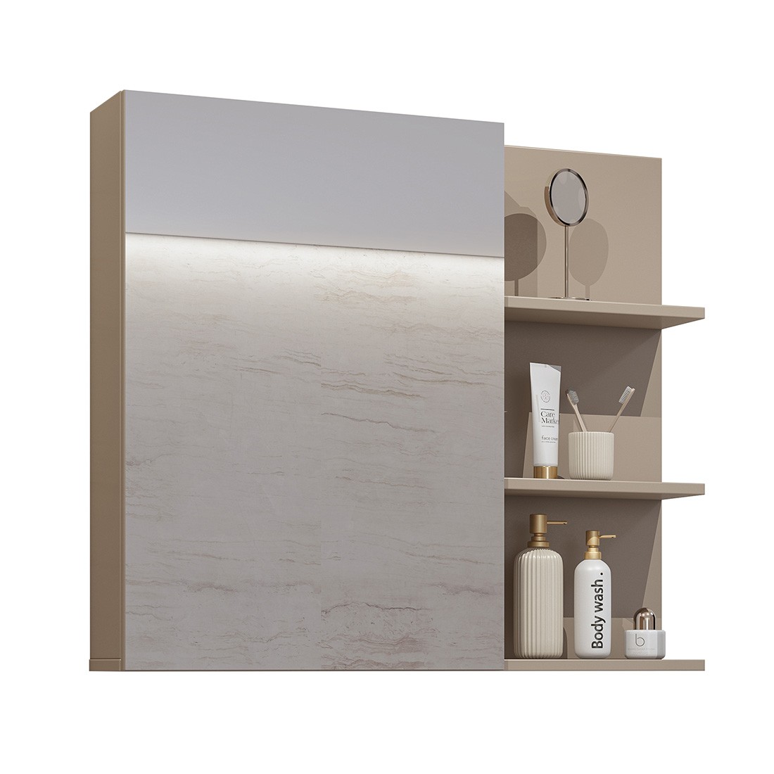 Complétez l'aménagement de votre salle de bain avec le miroir avec rangements GOBI, idéal pour les petites salles de bain où chaque centimètre compte. Ce meuble combine un miroir pratique et des rangements cachés, parfaits pour organiser vos accessoires. Avec ses dimensions de 78 cm de largeur, 70,6 cm de hauteur et 18 cm de profondeur, il optimise votre espace tout en apportant une touche de modernité avec son coloris marron congo et noir mat.