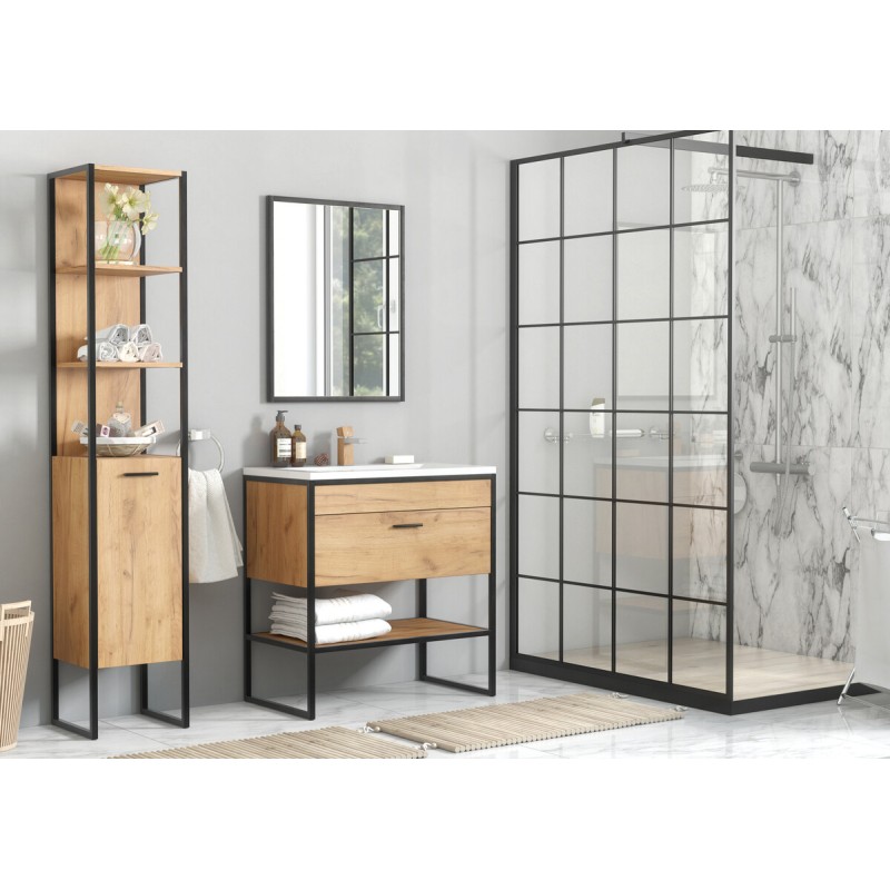 Son format vertical structure élégamment l’espace au-dessus d’un meuble vasque et contribue à donner une impression de hauteur. Il reflète naturellement la lumière et participe à agrandir visuellement la pièce tout en renforçant l’esthétique moderne.