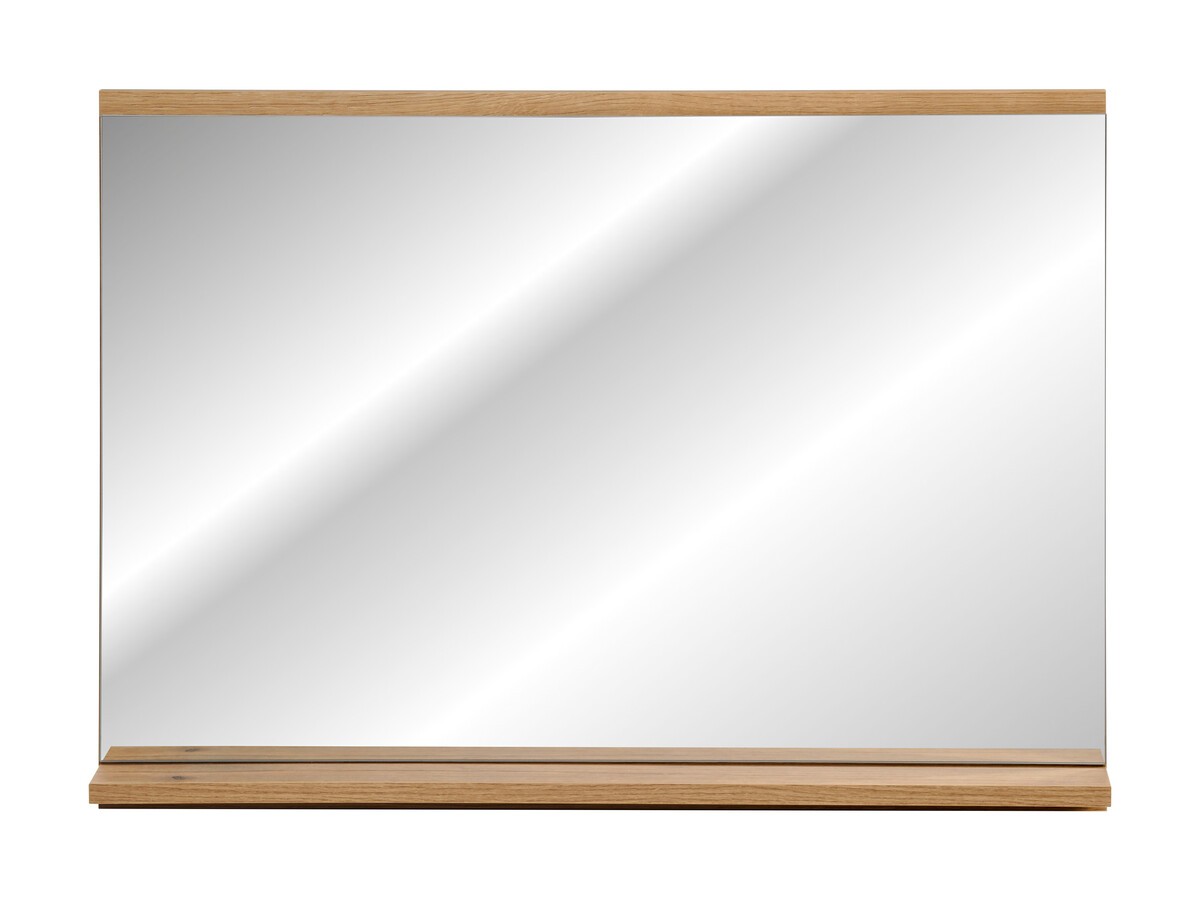 Ce miroir se distingue par son rebord de rangement intégré en bas, en coloris chêne, permettant de poser facilement vos accessoires du quotidien tels que brosses à dents, produits ou petits objets pratiques.