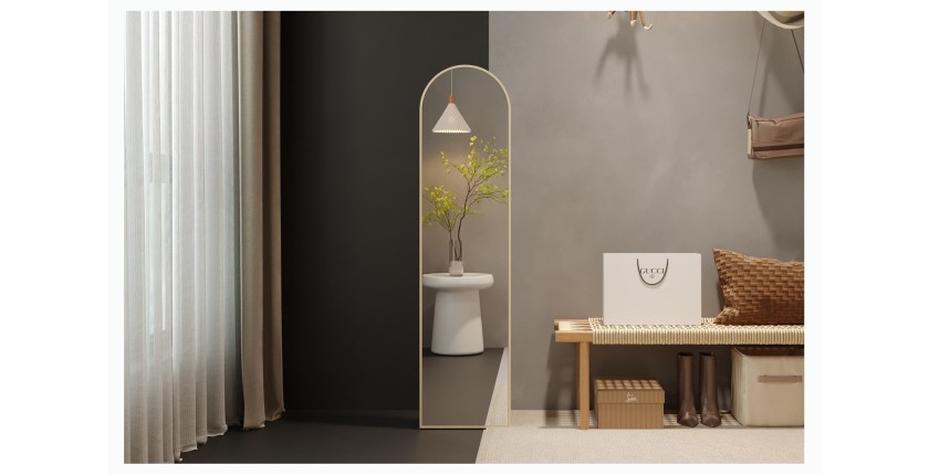 Idéal dans une entrée, une chambre ou un dressing, ce miroir s’utilise aussi bien posé au sol qu’accroché au mur. Sa structure en MDF avec décor papier offre une belle stabilité et un entretien facile avec un chiffon microfibre humide.