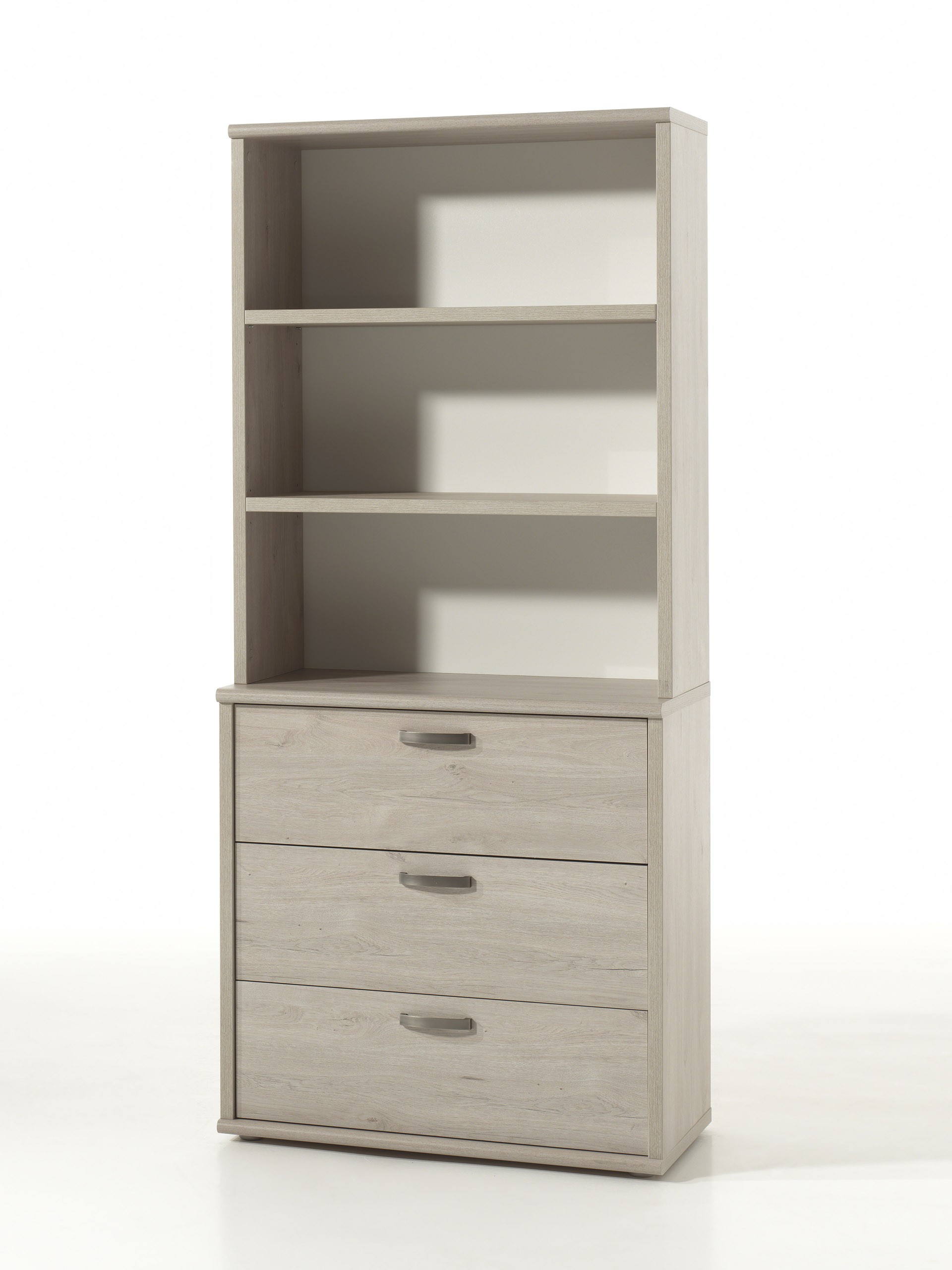 Optimisez votre espace de rangement avec la commode DANY équipée de 3 tiroirs et d’un module de 3 étagères. Son design en chêne clair et son style scandinave apportent une touche chaleureuse et moderne à votre chambre.