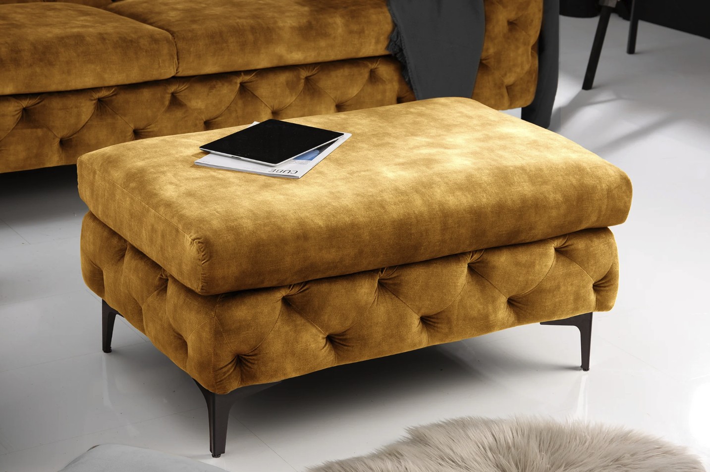 Le pouf VELENA en jaune moutarde apporte une touche audacieuse et élégante à votre intérieur. Pensé comme un pouf décoratif et fonctionnel, il s’intègre aussi bien dans un salon que dans une chambre ou un espace détente, en offrant une assise d’appoint confortable et tendance.
