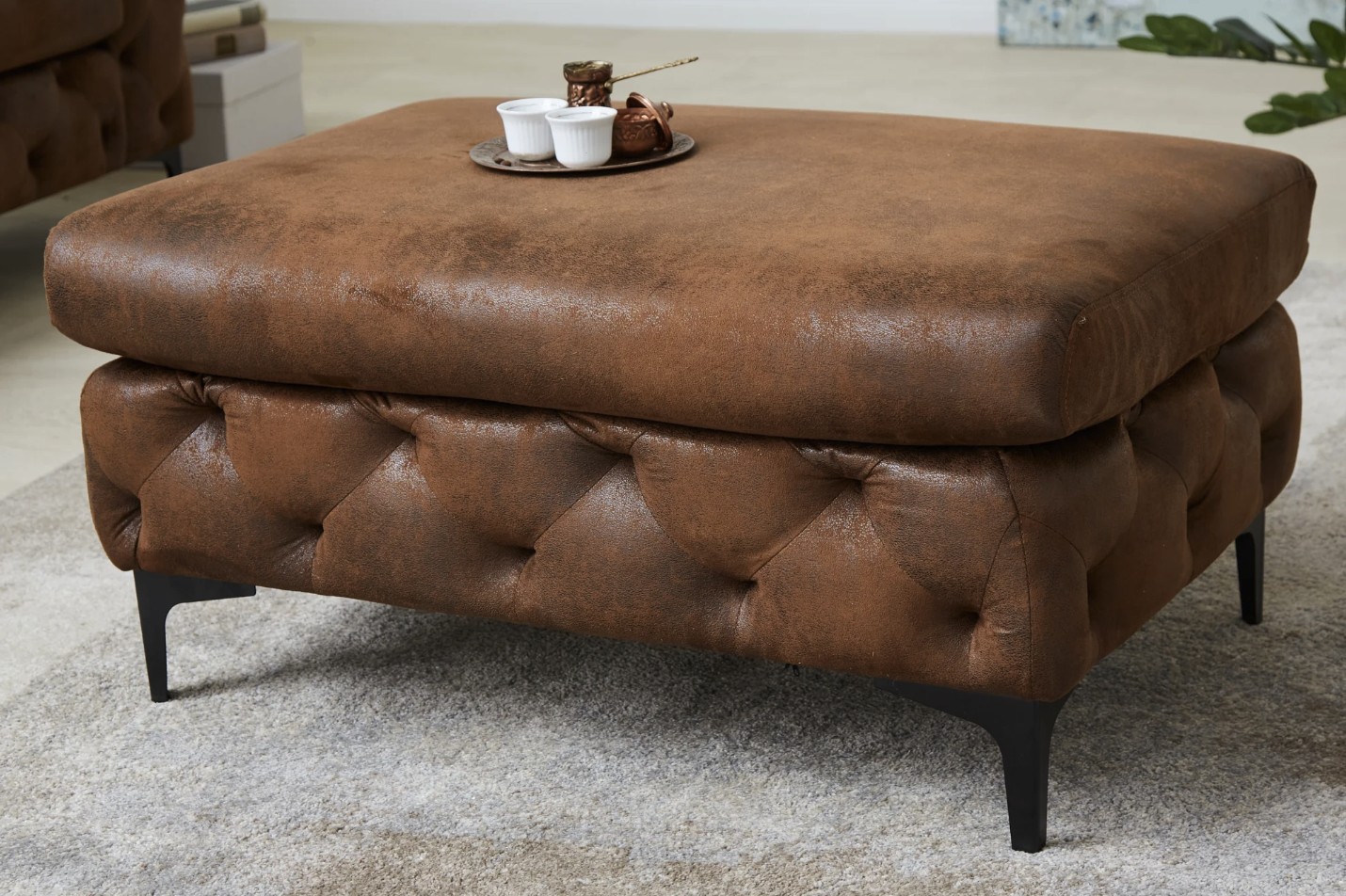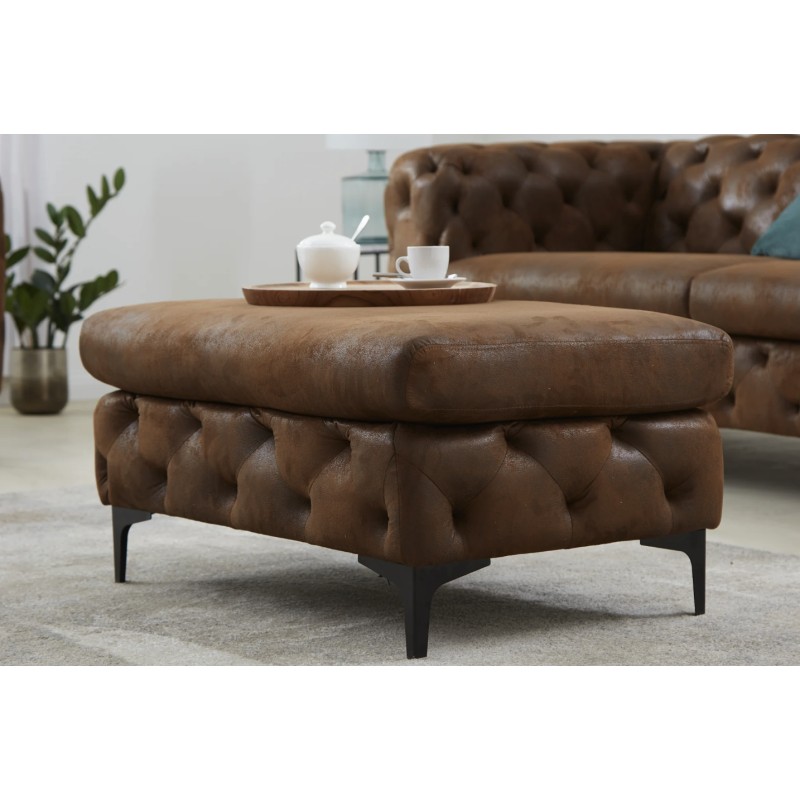 Le pouf VELENA en marron complète parfaitement un salon au style baroque ou élégant. Compact et polyvalent, il s’intègre facilement dans votre espace de vie en offrant une assise d’appoint confortable ou un repose-pieds harmonieux, tout en apportant une touche décorative sophistiquée.