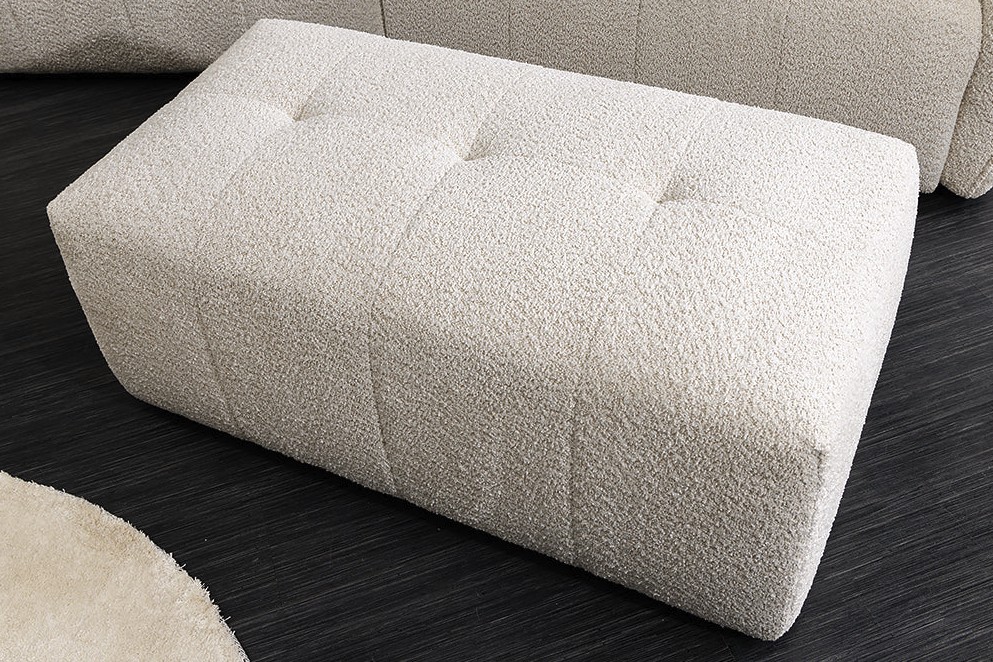 Doté d’une structure robuste en bois associée à des ressorts, ce pouf garantit une excellente stabilité et un confort durable. Son revêtement en tissu bouclette apporte douceur, texture et élégance, tout en s’inscrivant dans les tendances actuelles de l’ameublement.