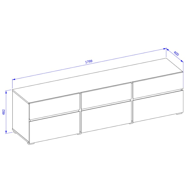 | Dimensions des éléments (en cm) | Meuble TV : L 179,9 x H 48,2 x P 40 - Buffet : L 179,9 x H 48,3 x P 40 - Buffet haut : L 119,4 x H 139 x P 40cm |