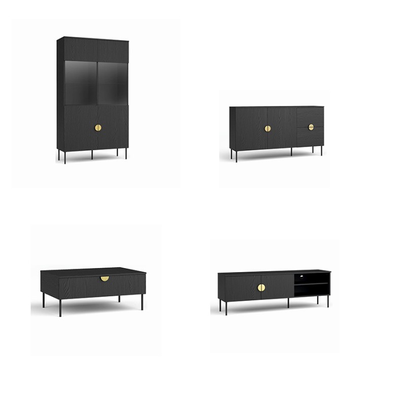 Apportez une touche sophistiquée à votre intérieur avec l’ensemble MONDO. Son coloris noir profond associé à des poignées dorées crée un contraste élégant et tendance, parfait pour sublimer votre salon.