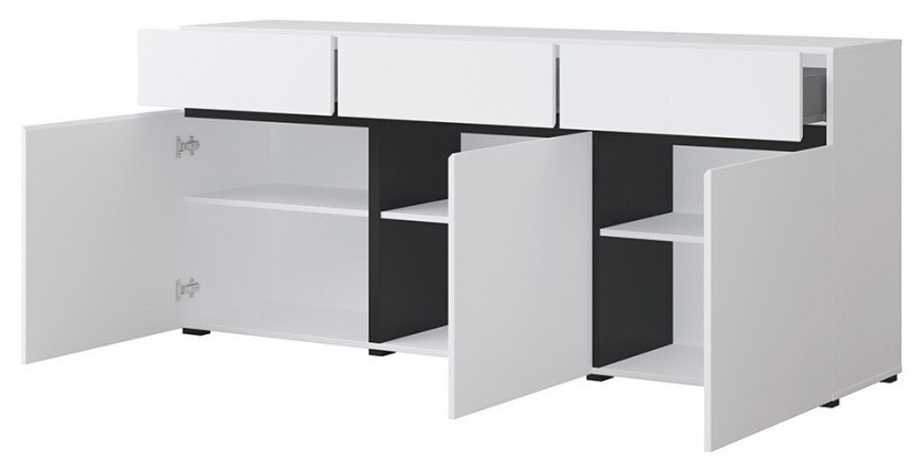 Adoptez un style graphique et moderne avec ce pack de meubles HAVANA en coloris blanc et noir. Cet ensemble se compose d’un buffet haut, d’un meuble TV et d’un buffet bas, pour un salon entièrement meublé avec élégance et harmonie.